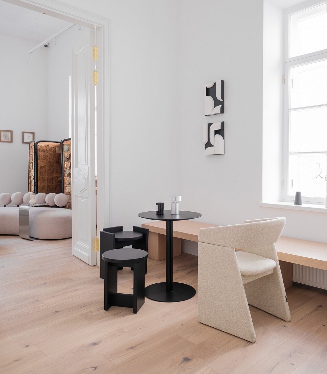 Необычный дизайн стула Archipelago 61° — 38° KARGOPOL был вдохновлён силуэтом знаменитого каргопольского кокошника – наследия ремесленного мастерства и истории старинного русского города Каргополь. Боковые опоры стула повторяют элементы шапочки кокошника, создавая геометричную конструкцию с удачно подобранными вариантами яркой текстильной обивки.