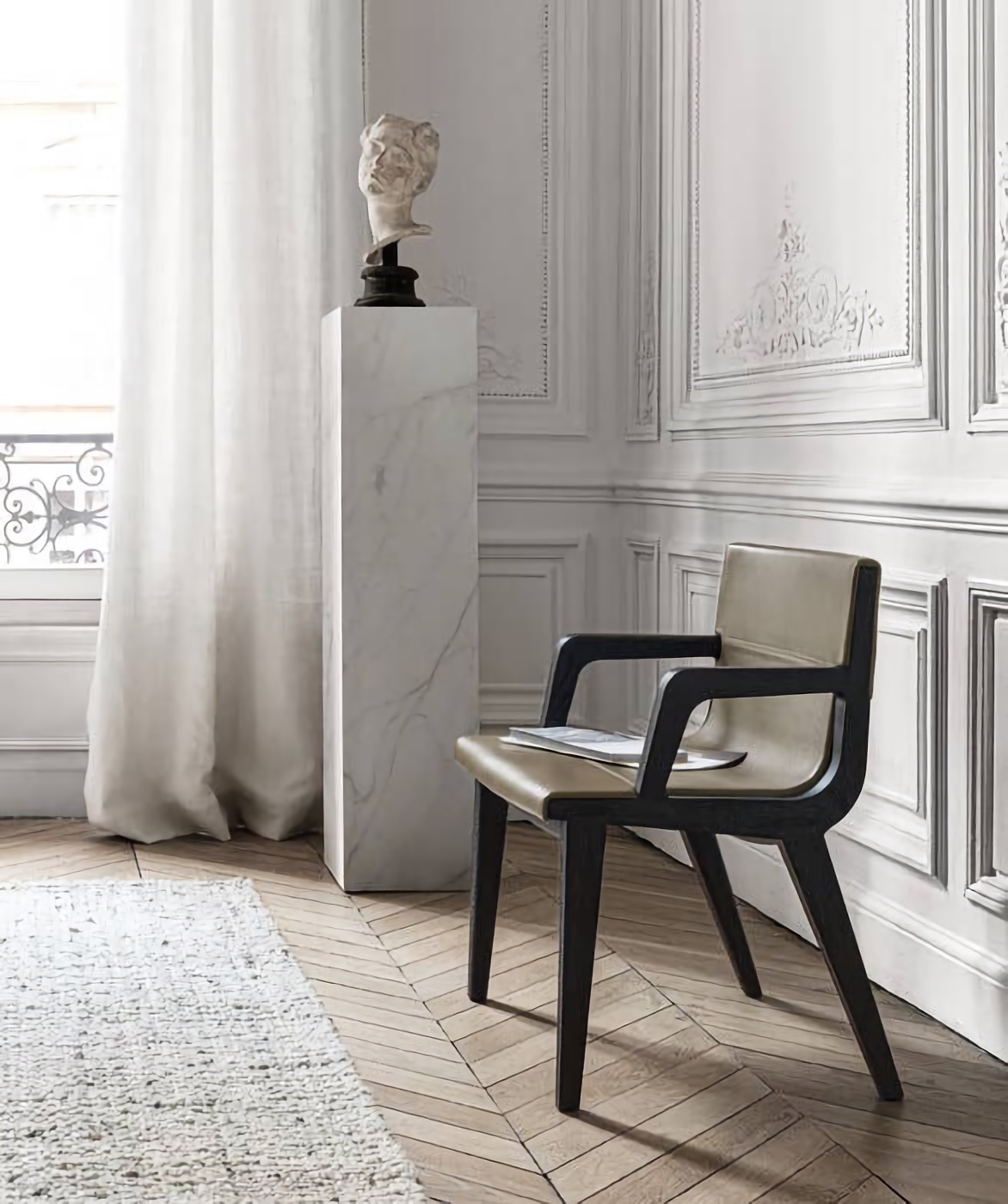 Элегантный стул Maxalto Acanto соединяет в своём облике высокую спинку, наклонные ножки и изогнутые подлокотники. Каркас Acanto выполняется из массива дерева с тщательно отшлифованной поверхностью. Модель от Maxalto украсит обеденные зоны, сочетающие классику и современность.