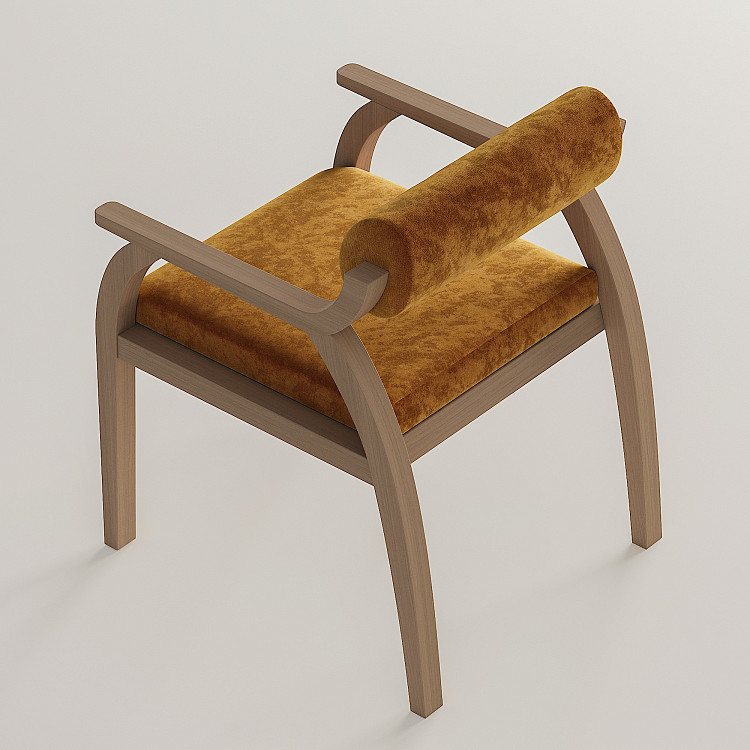Стул Modénature Amorey Chair от Alexander Beloborodov. Дизайн построен на игре прямых и изогнутых линий. Дужки подлокотников мягко изгибаются от задних ножек. Цилиндрическая спинка закреплена на этих изгибах. Сиденье утоплено в деревянную раму. Форма кажется одновременно динамичной и устойчивой.