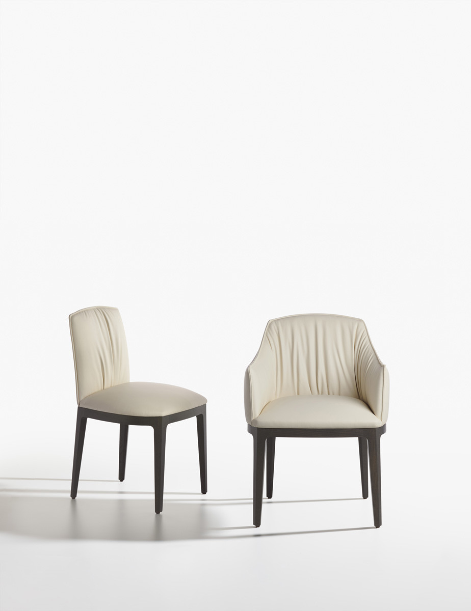 Стул Potocco Blossom от Bernhardt & Vella — дизайн с текстурной спинкой и скругленным сиденьем. Вертикальные складки на обивке образуют мягкий рельеф. Прямые деревянные ножки. Простой и элегантный силуэт. Доступен в двух вариантах: с подлокотниками и без.
