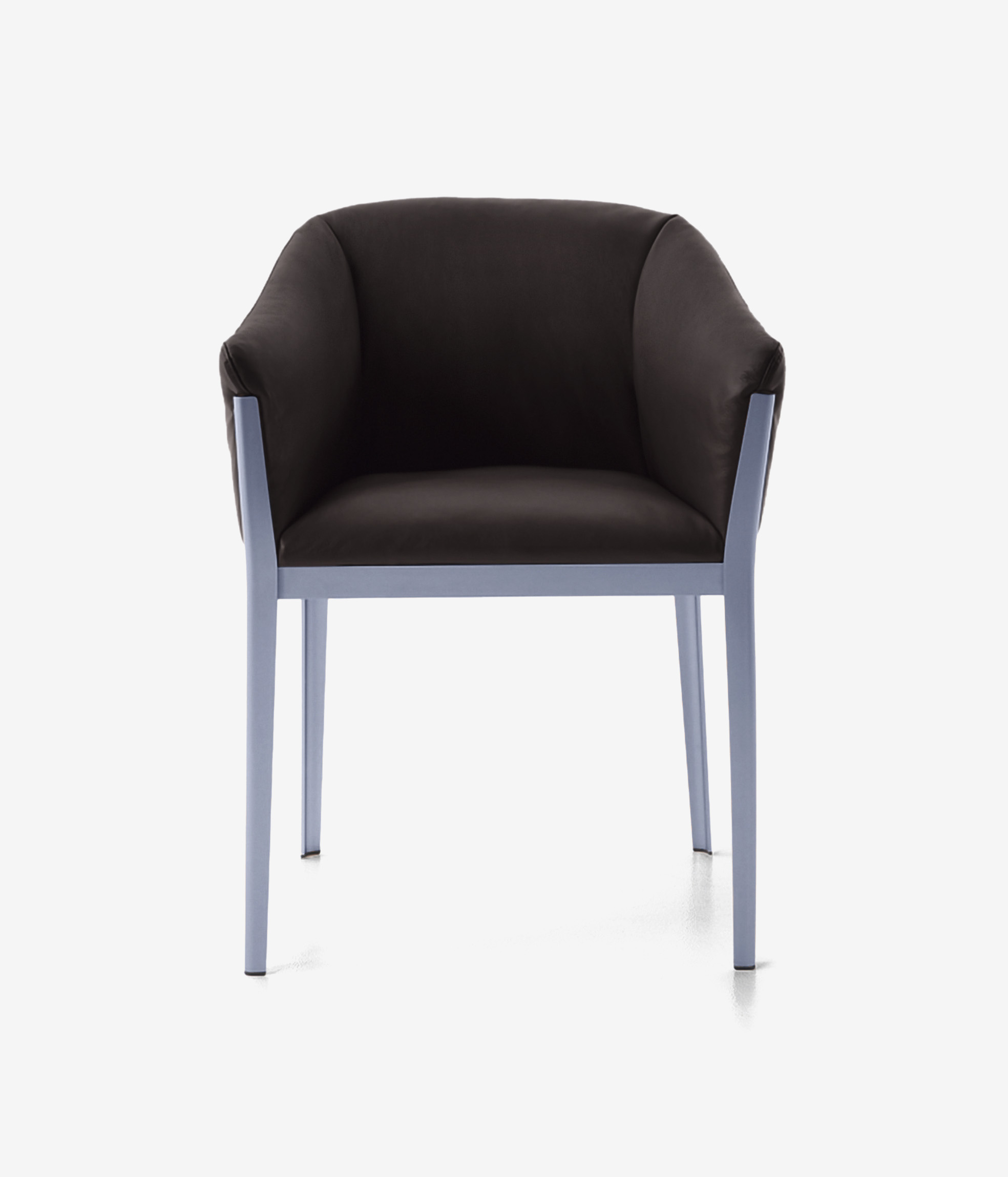 Ножки стула Cassina Cotone изготовлены из алюминия. Обивка — ткань, кожа. В качестве наполнителя используется пенополиуретан.