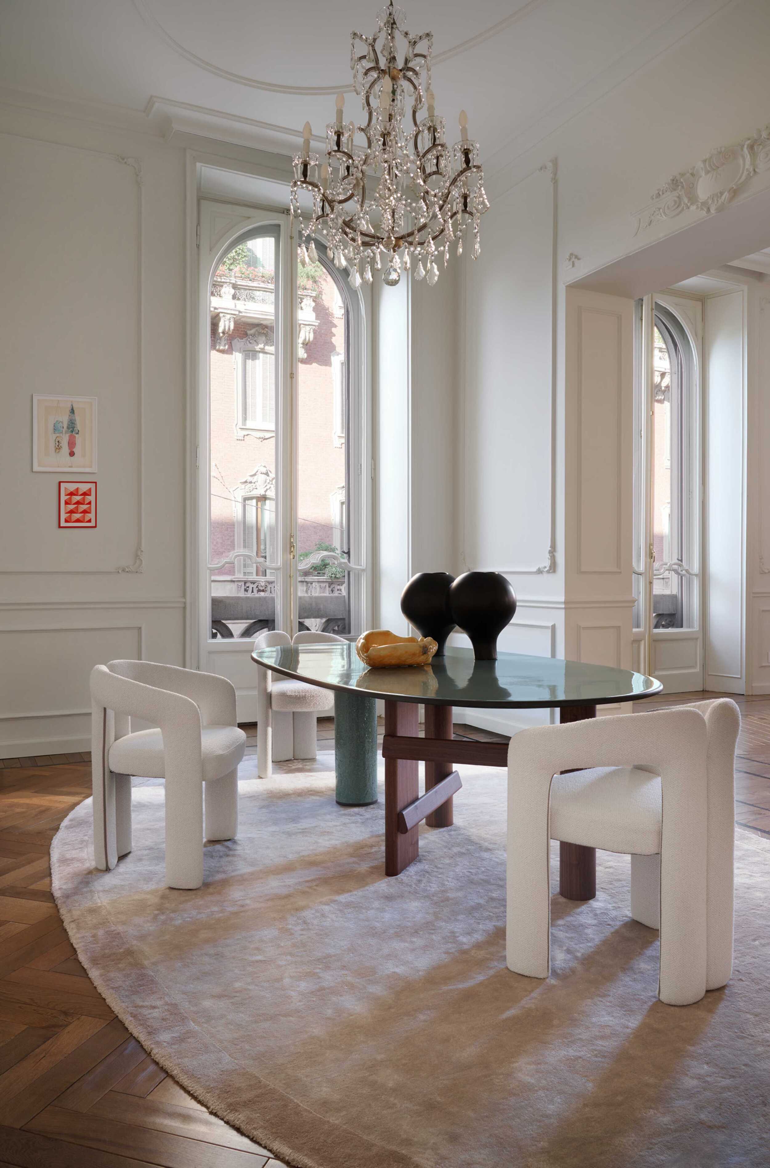 Современное обеденное кресло Dudet от Cassina — мягкость, ретро-эстетика и экодизайн, ставшие результатом проекта Patricia Urquiola. Обволакивающая форма дизайнерской модели состоит из скруглённого сиденья и двух изогнутых элементов, плавно переходящих в подлокотники и спинку. Кресло со скульптурными контурами надёжно поддерживает тело и идеально подходит для длительного отдыха. Обивка Dudet Chair выполняется из тканей премиум-класса и элитной натуральной кожи.