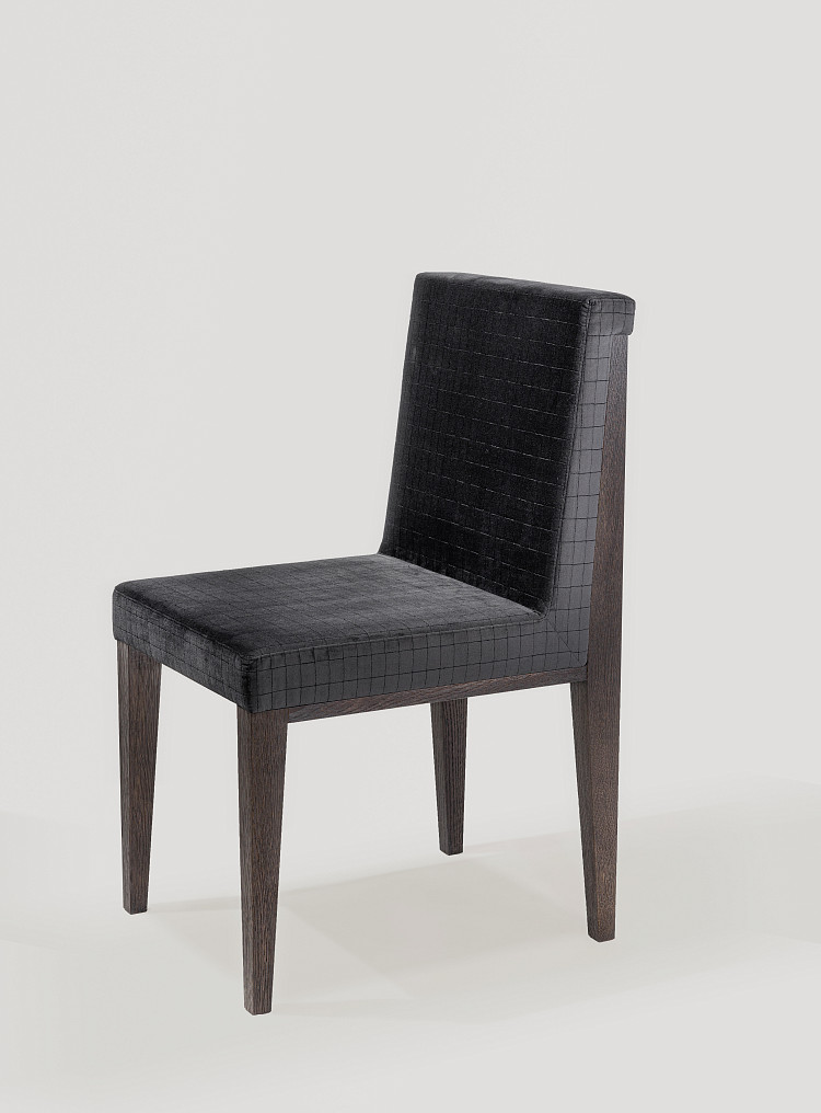 Стул Modénature Elias Chair от Marc de Berny легко впишется в интерьер. Его отличает плотная стежка в виде сетки на текстильной обивке. Деревянный каркас сохраняет простые прямоугольные формы. Сиденье достаточно толстое для комфортной посадки. Задние ножки продолжаются в опоры спинки. Цветовая гамма темная и спокойная.