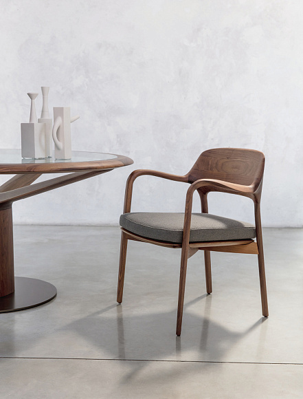 В дизайне стула Porada Ella переплетаются японская и американская культуры. Создавая эту модель, Patrick Jouin уделил особое внимание удобным подлокотникам изогнутой формы. Каркас стула выполнен из натурального дерева высокого качества с использованием современных производственных технологий.