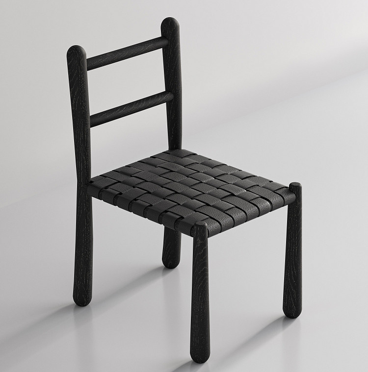 Стул Modénature Flinstones Chair от Marc de Berny. Эта модель отсылает к традиционной американской мебели, но без точного копирования. Плетеное сиденье, круглые ножки, спинка из двух перекладин — все детали знакомы, но сложены в новое целое. Темный брашированный дуб подчеркивает рукотворность предмета.