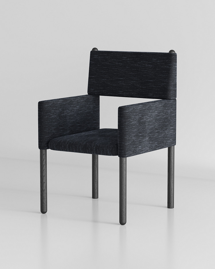 Стул Modénature Karl Chair от Anastasiya Shevtsova — модель, в которой угадывается дух ширмы Brick Screen Эйлин Грей. Прямоугольные подлокотники и спинка словно нанизаны на невидимый каркас. Цилиндрические ножки и сквозной просвет под сиденьем усиливают графичность. Форма сочетает простоту линий со сложным визуальным ритмом.
