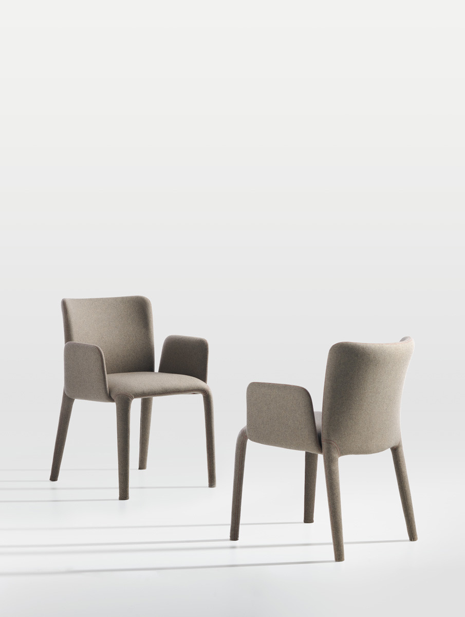 Стул Potocco Lars от Gabriele e Oscar Buratti — модель с обтекаемыми линиями и бесшовной обивкой. Спинка переходит в сиденье, мягкие ножки плавно продолжают силуэт. Версия с подлокотниками отличается выступающими, приподнятыми по бокам элементами.