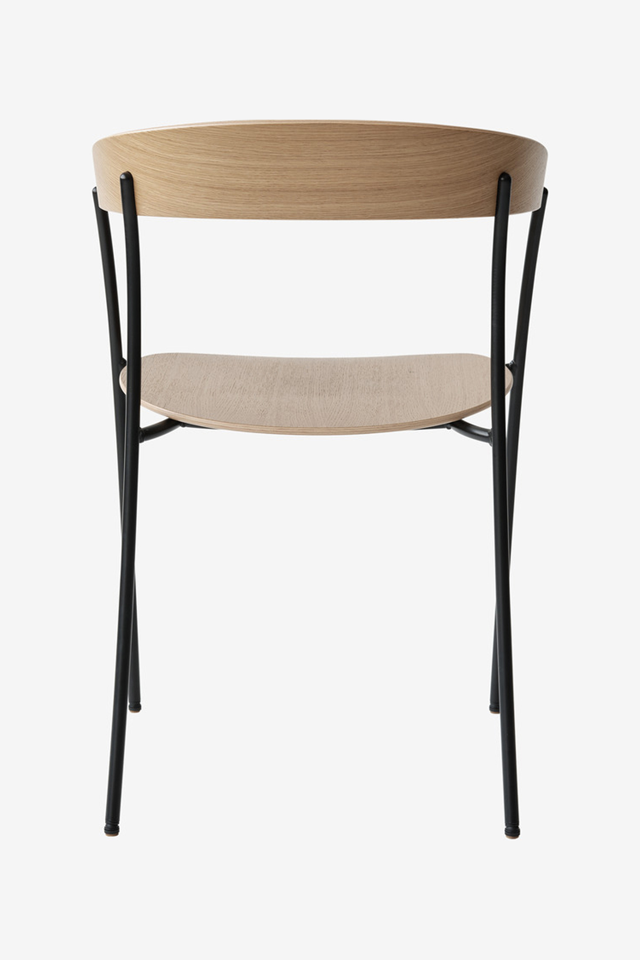 Каркас: порошковая сталь. Сиденье и спинка: дерево, обивка.