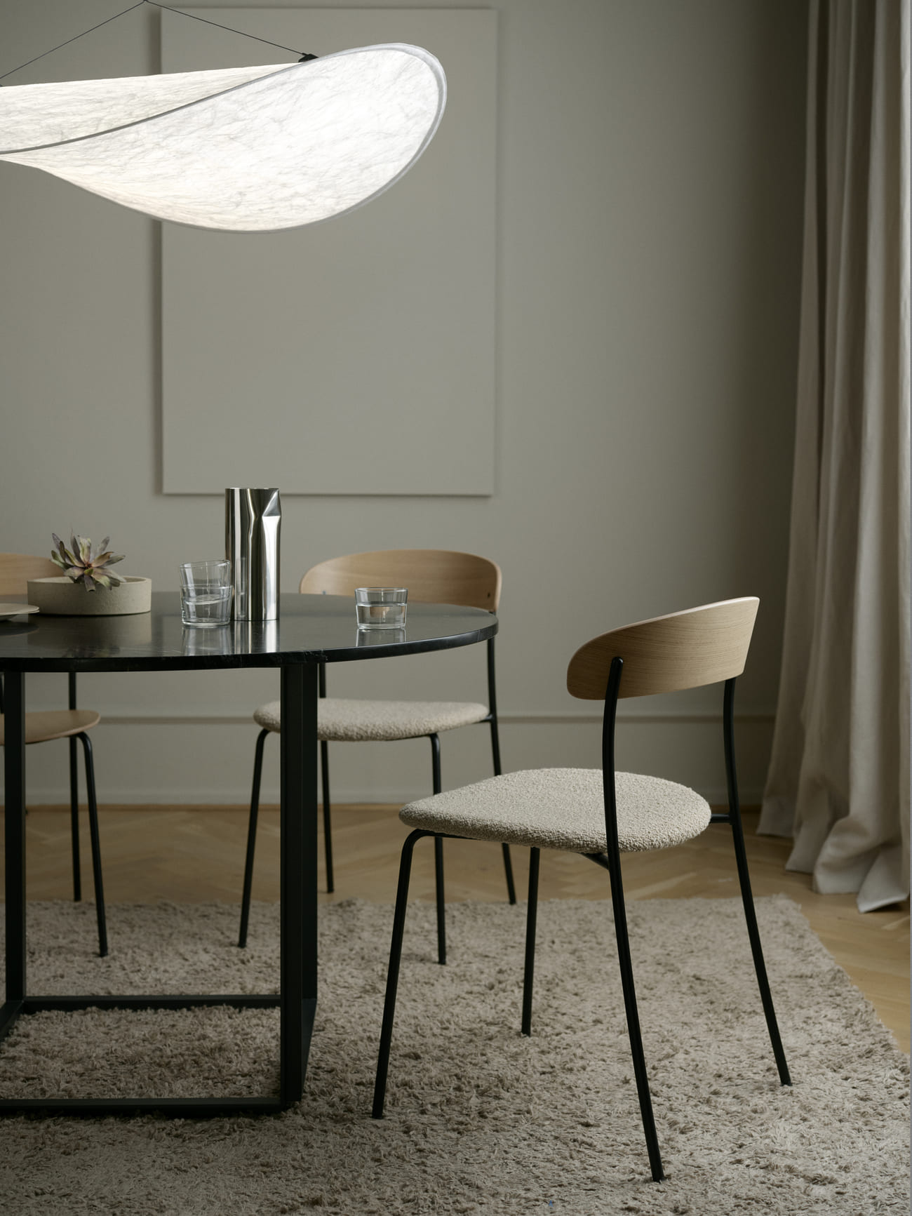 Стул New Works Missing Chair обладает простым, но будто ожившим природным узором дерева. Мягкие изгибы рисунка создают парящую конструкцию сиденья и спинки над устойчивым металлическим каркасом. Лаконичная форма стула делает его универсальным вариантом для любого пространства.