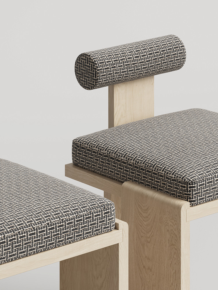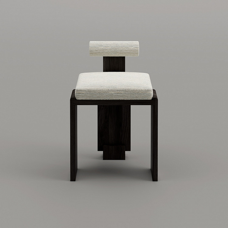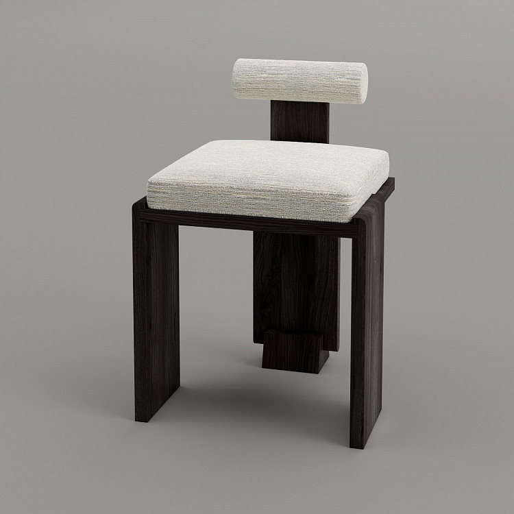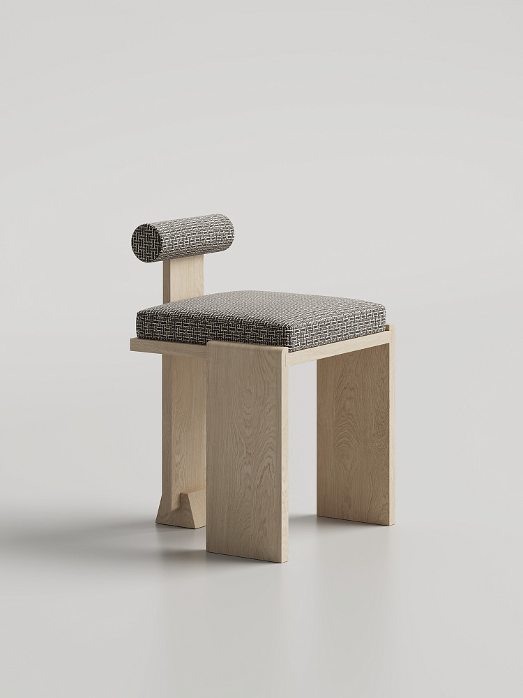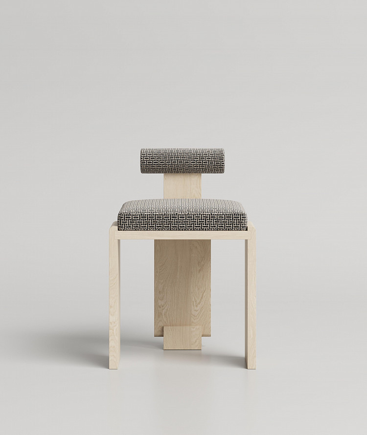 Стул Modénature Scroll Chair от Viktoriya Kliman отличается архитектурным подходом. Его конструкция — это диалог массивных ножек, где задняя плавно расширяется к полу, и легких мягких элементов. Цилиндрическая спинка и квадратное сиденье смягчают геометрию, не нарушая ее четкости. Форма выглядит собранной и уравновешенной.