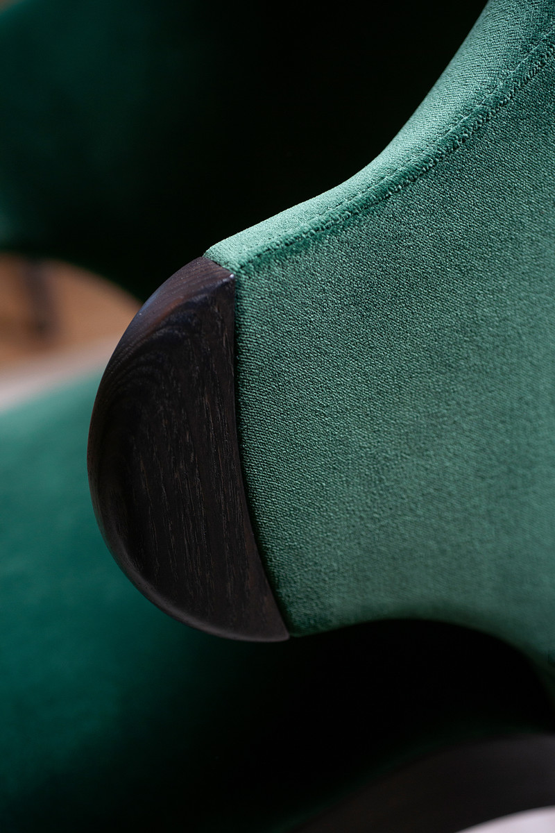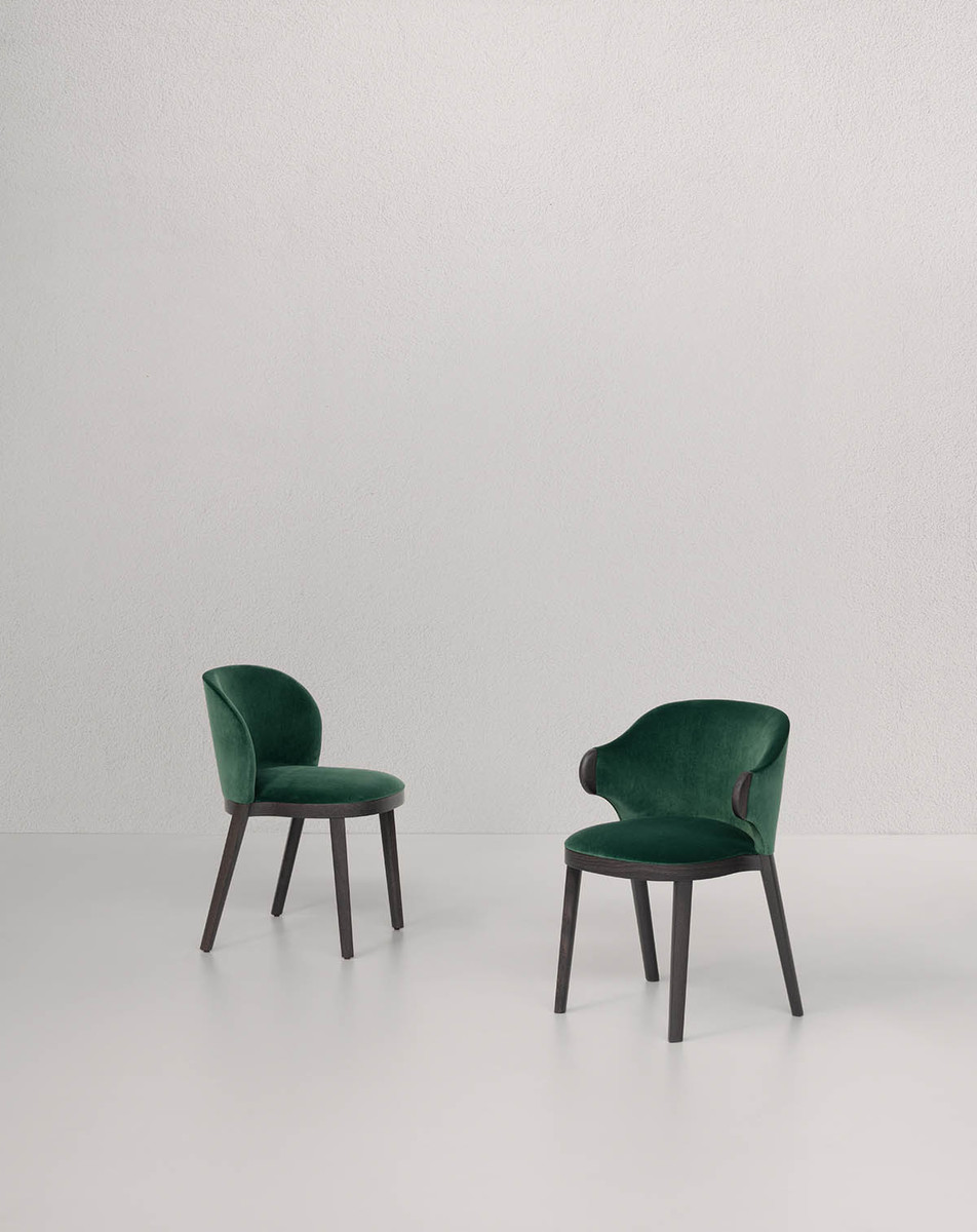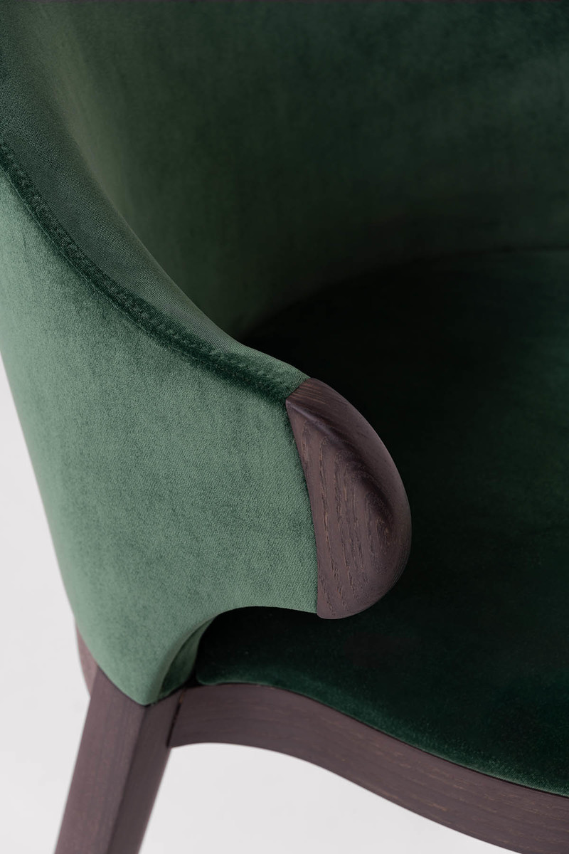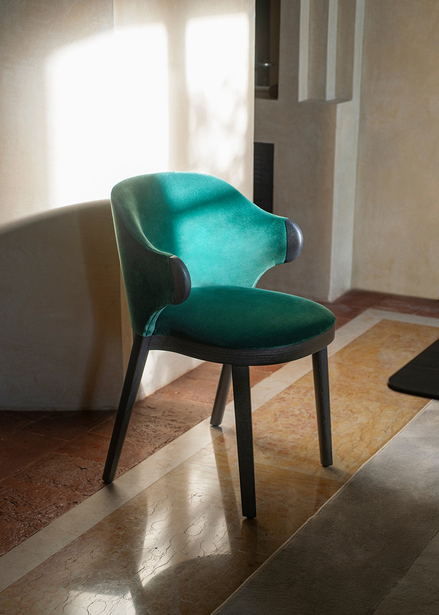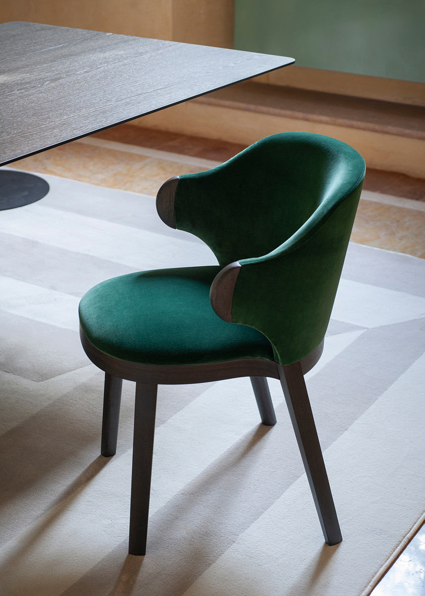Стул Potocco Trousse — версия с подлокотниками и более широким сиденьем. Спинка образует частичное кольцо с закругленными выступами по бокам. Мягкое сиденье кругло-овальной формы. Каркас из массива ясеня обеспечивает устойчивость.