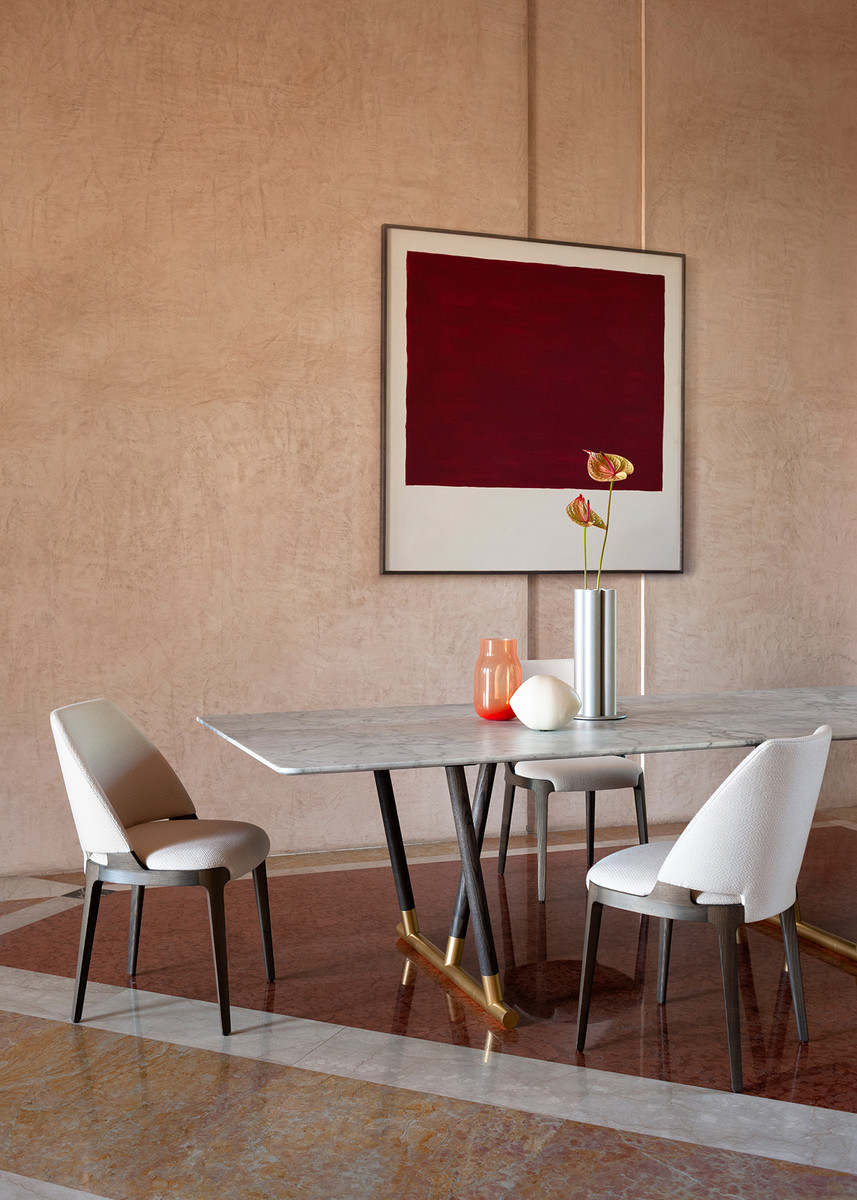 Каркас: массив ясеня или ореха Canaletto. Обивка: текстиль или кожа по карте отделок фабрики. Наполнитель: огнестойкий пенополиуретан.