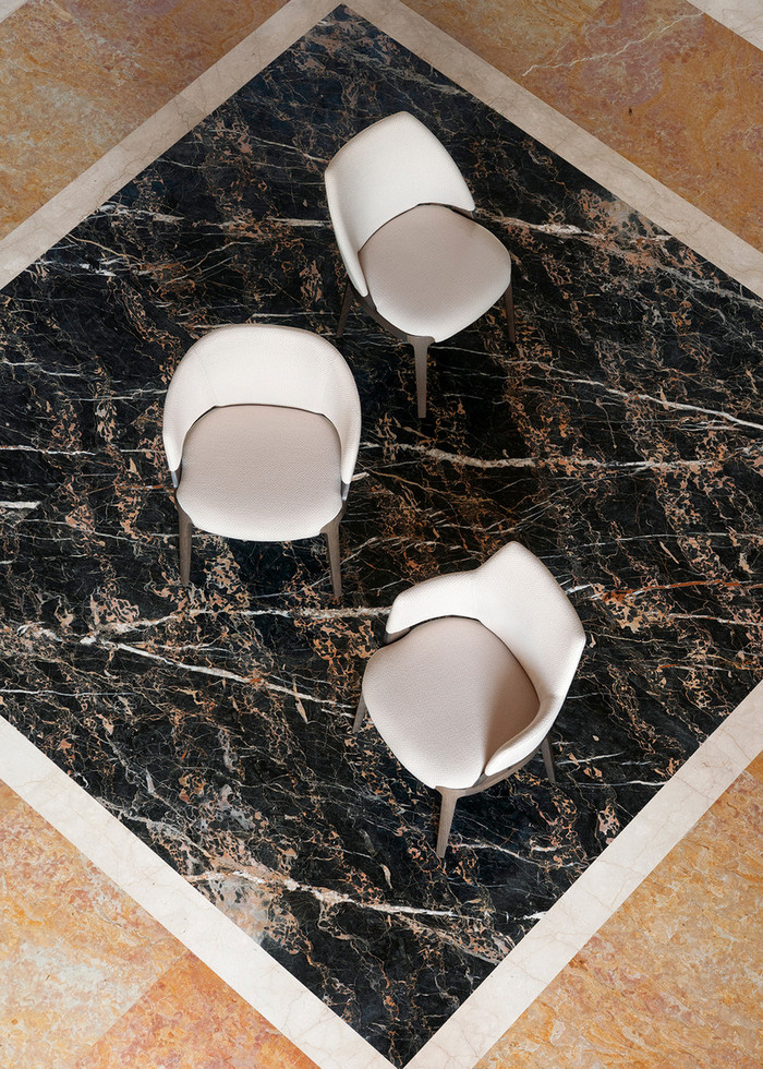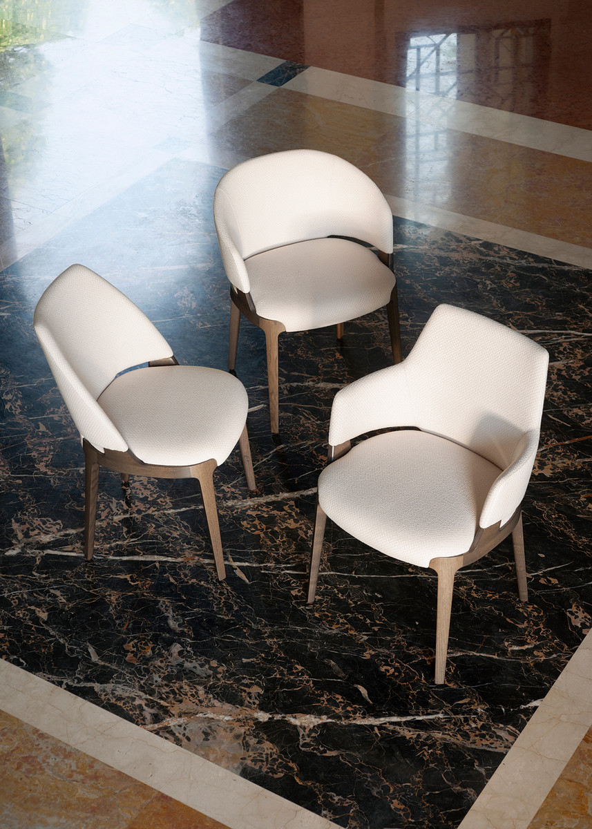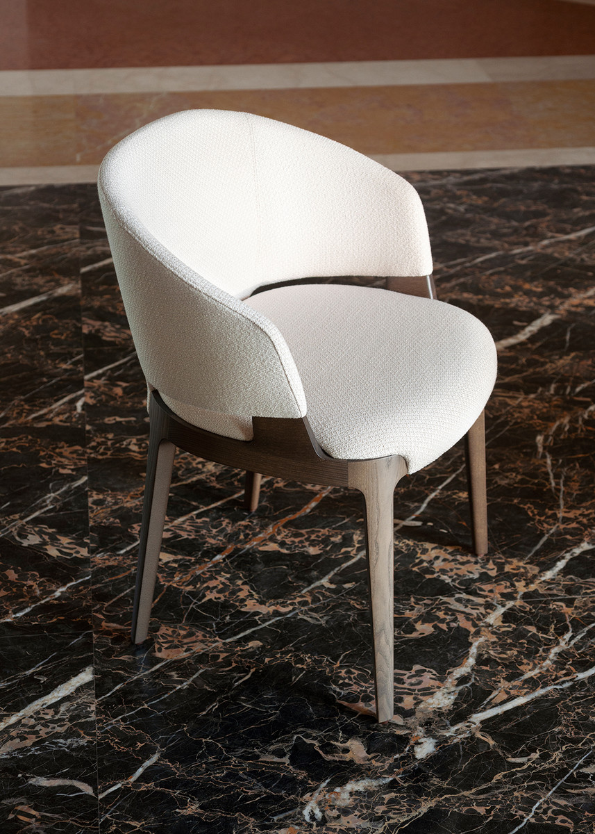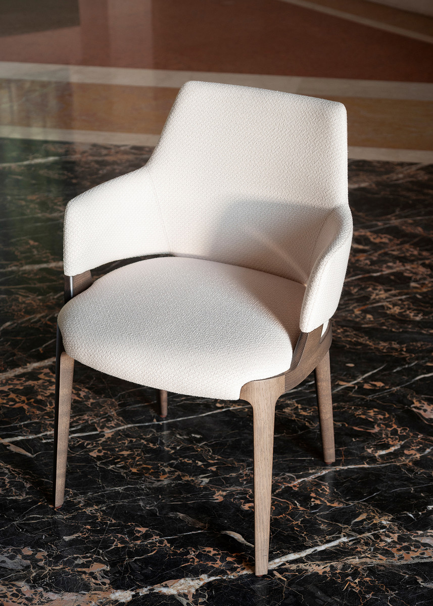 Каркас: массив ясеня или ореха Canaletto. Обивка: текстиль или кожа по карте отделок фабрики. Наполнитель: огнестойкий пенополиуретан.