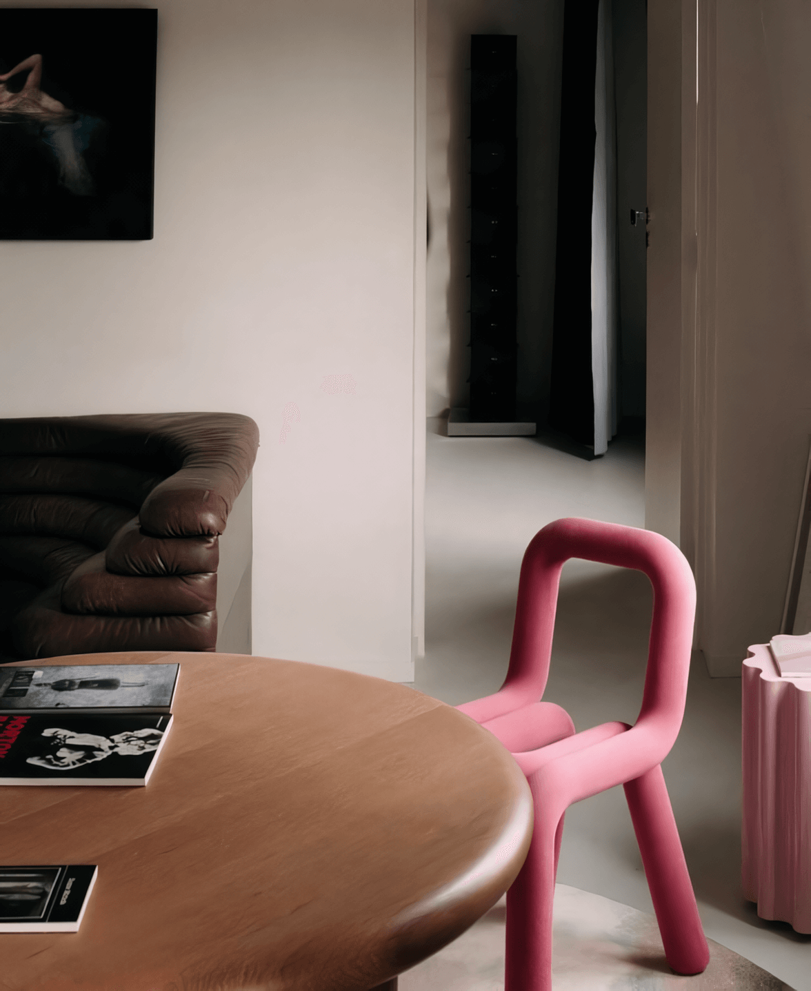 Стул Bold Chair имеет стальной каркас, пенополиуретановое наполнение и съёмный текстильный чехол.