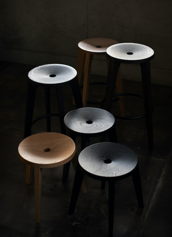 Простота древесных материалов табурета Ariake Dovetail Stool 3 Legs виртуозно компенсируется его конструкцией: сиденье располагается на трёх ножках. Слегка углубленное основание мебели дополняется круглым отверстием в центре, которое ещё больше подчёркивает плавность его изгибов.