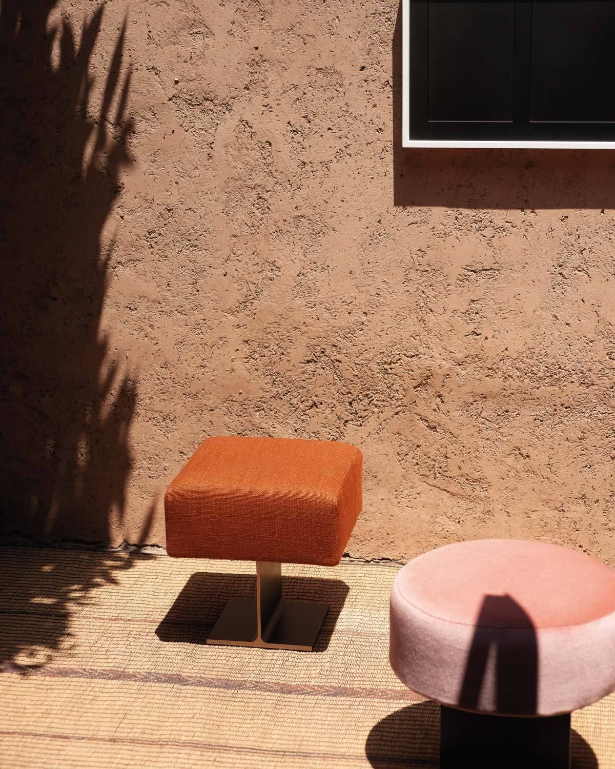 Дизайн табурета Tacchini Trono от Umberto Bellardi Ricci основан на игре простых геометрических форм. Мягкое сиденье сочетается с металлической опорой, которая плавно переходит в квадратное основание.