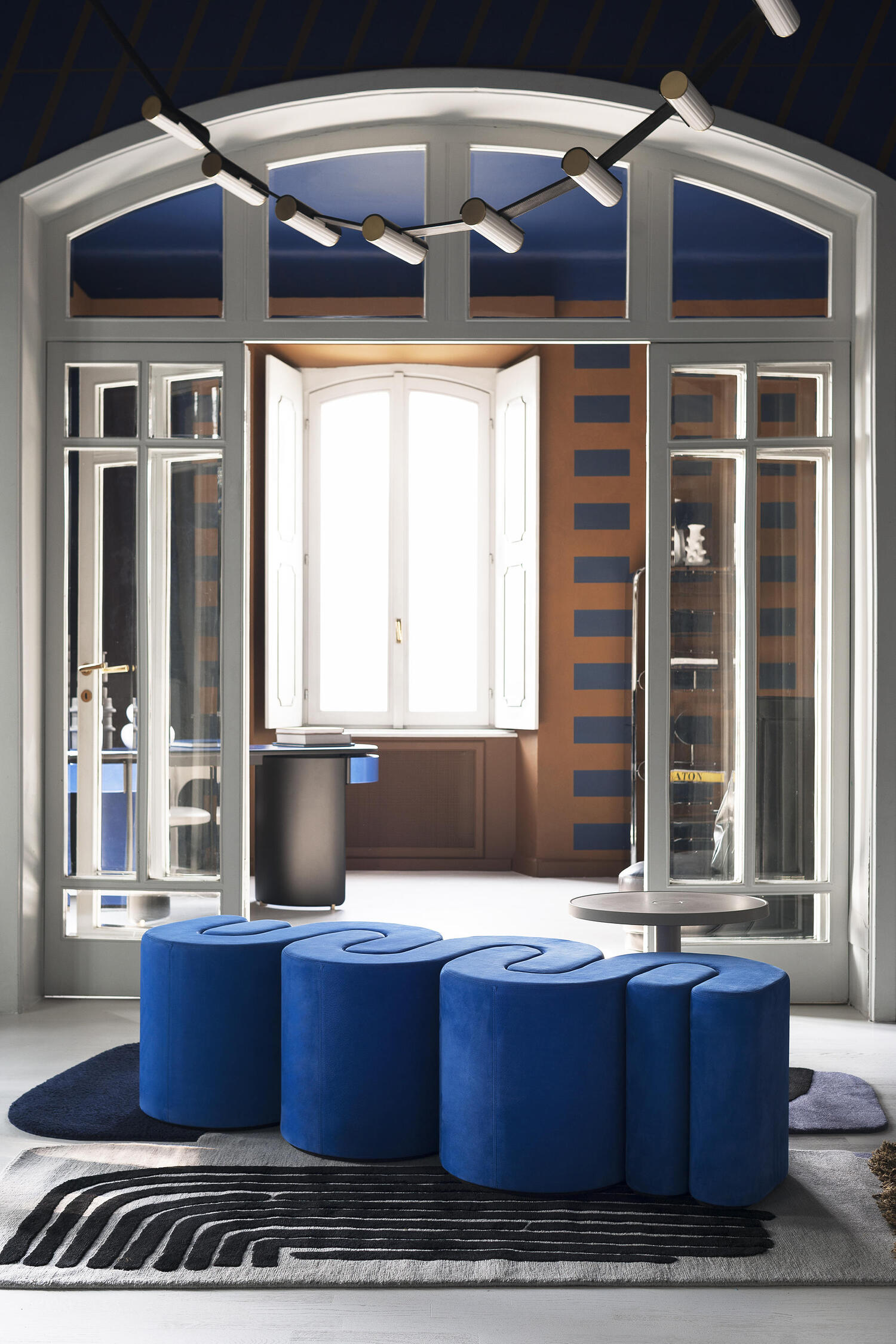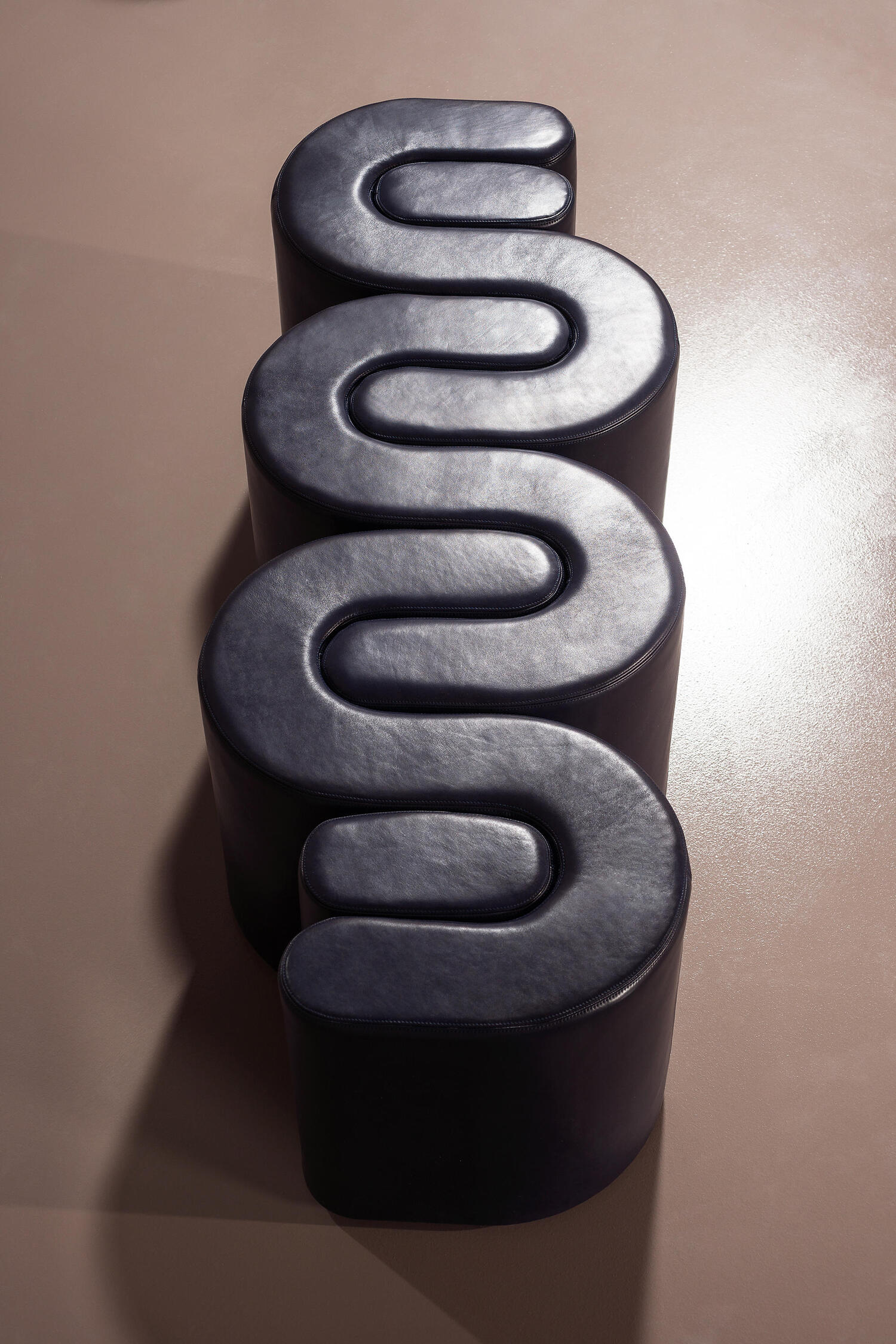 Составные модули с плавными извилистыми изгибами соединяются в банкетке Baxter Adel, придавая ей уникальный характер. Необычный силуэт модели напоминает движущуюся змею. Банкетка, расположенная в гостиной, входной или спальной зоне, освежит интерьер и станет главным акцентом пространства.