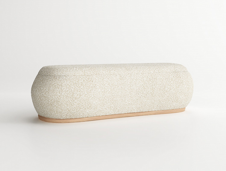 Банкетка Modénature Amado Bench от Alexander Beloborodov — модель с мягкими обтекаемыми формами. Основание представляет собой тонкую деревянную платформу, повторяя изогнутый контур банкетки. Сиденье выпуклое, с сильно скругленными углами.