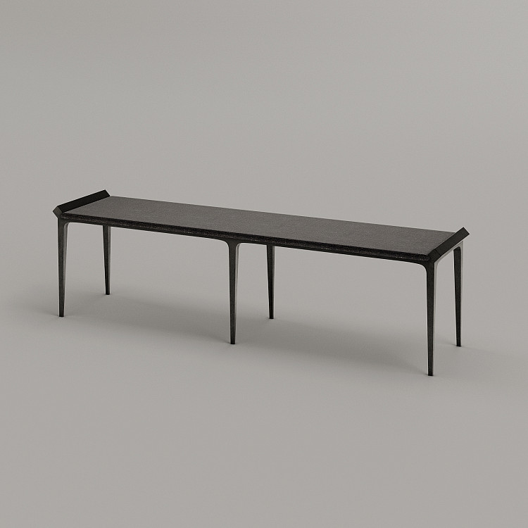 Банкетка Modénature Diamant Médium Bench от Ivan Basov представляет собой удлиненную версию модели Diamant. Ее нестандартная высота достигается за счет шести длинных ножек очень тонкого сечения. Они поддерживают раму, края которой выделены невысокими бортиками. Внутри образованного ею прямоугольника расположено сиденье.