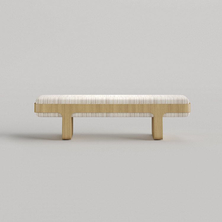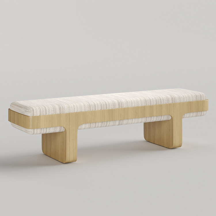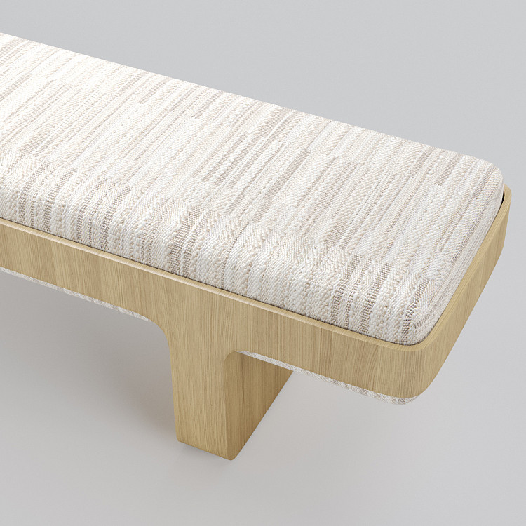Банкетка Modénature Éclair Bench от Oleg Klodt построена по принципу рамы и вставки. Жесткая деревянная основа образует четкие внешние границы. Внутри нее помещена мягкая подушка, составляющая сиденье. Подушка сохраняет самостоятельный контур со скругленными гранями. Нижние части рамы служат надежными опорами.