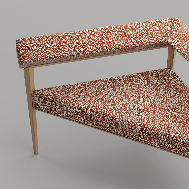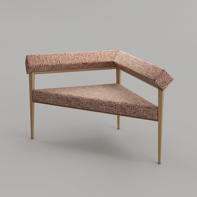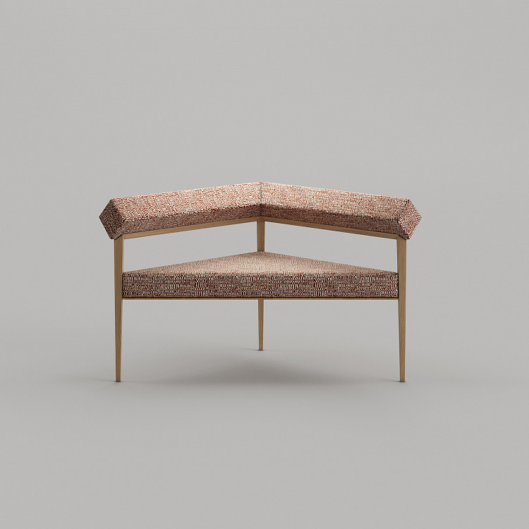 Банкетка Modénature Triangle Bench от Ivan Basov решена в характерном для автора стиле. Угловая форма сочетается со спинкой из валика квадратного сечения, установленного на ребро. Три тонкие ножки конической формы создают ощущение легкости. Деревянная рама под сиденьем дублирует треугольный абрис.
