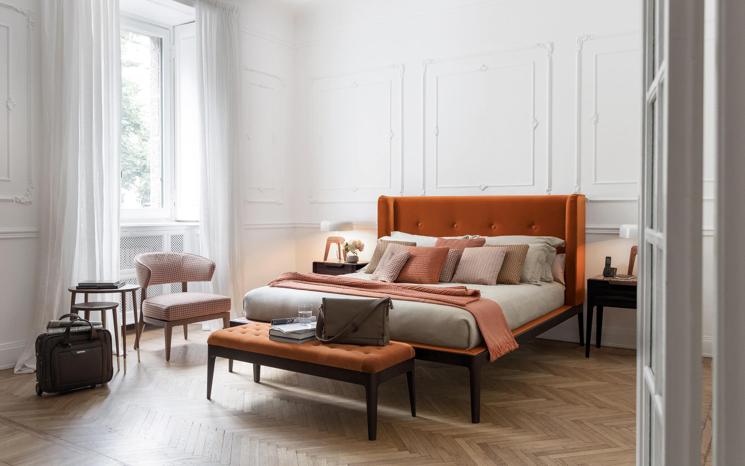 Банкетка Porada Webby доступна в разных цветах дерева, кожи и текстиля. За подробным расчетом необходимой конфигурации в нужной отделке, пожалуйста, обращайтесь к менеджерам.