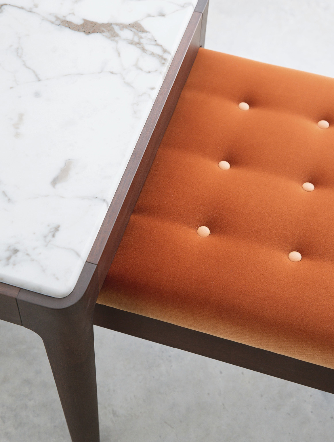 Банкетка Porada Webby в классическом стиле станет элегантным дополнением гостиной или спальной зоны. Длинные ножки предмета мебели выполнены из экологически чистой древесины, собираемой в собственном лесу фабрики Porada. Банкетка украшена объёмными швами и круглыми пуговицами, которые могут иметь как однотонный, так и контрастный оттенок.