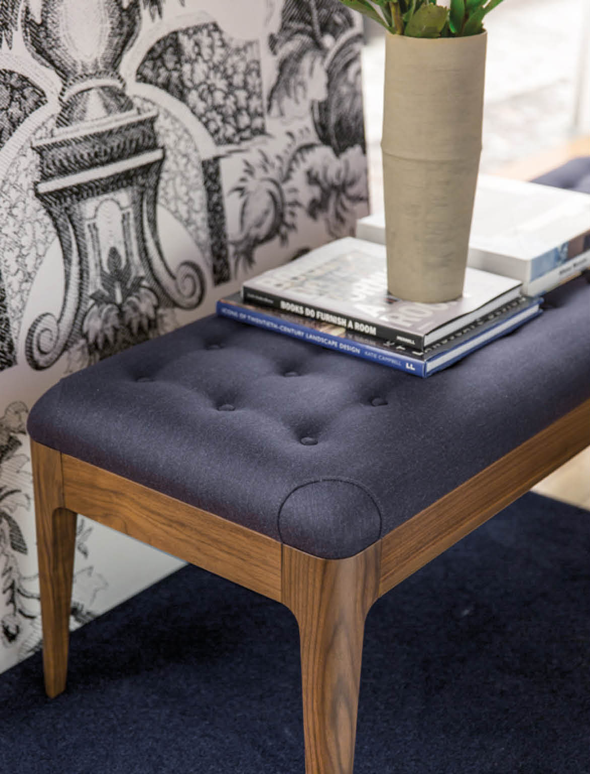 Ножки банкетки Porada Webby изготовлены из дерева (возможно дополнительное покрытие матовым лаком). Обивка выполнена из кожи или текстиля.