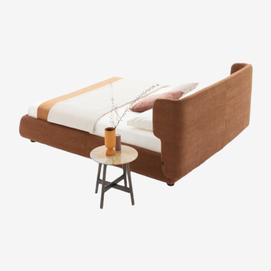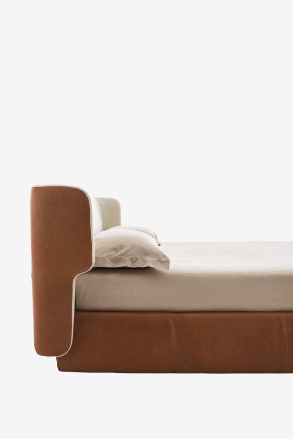 Изголовье кровати имеет съёмный чехол из ткани и несъёмный — из кожи. Каркас имеет съёмный чехол из ткани и кожи.