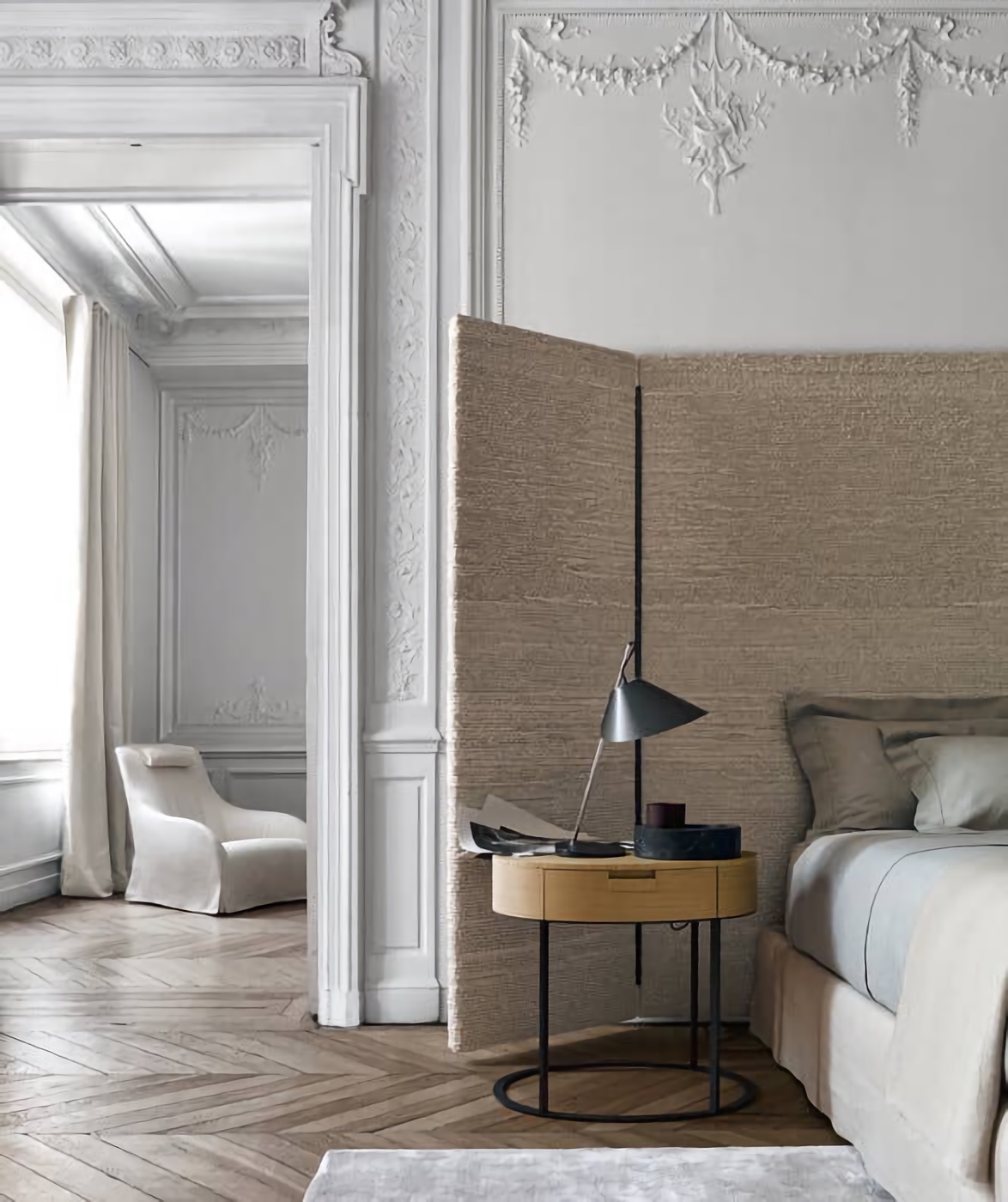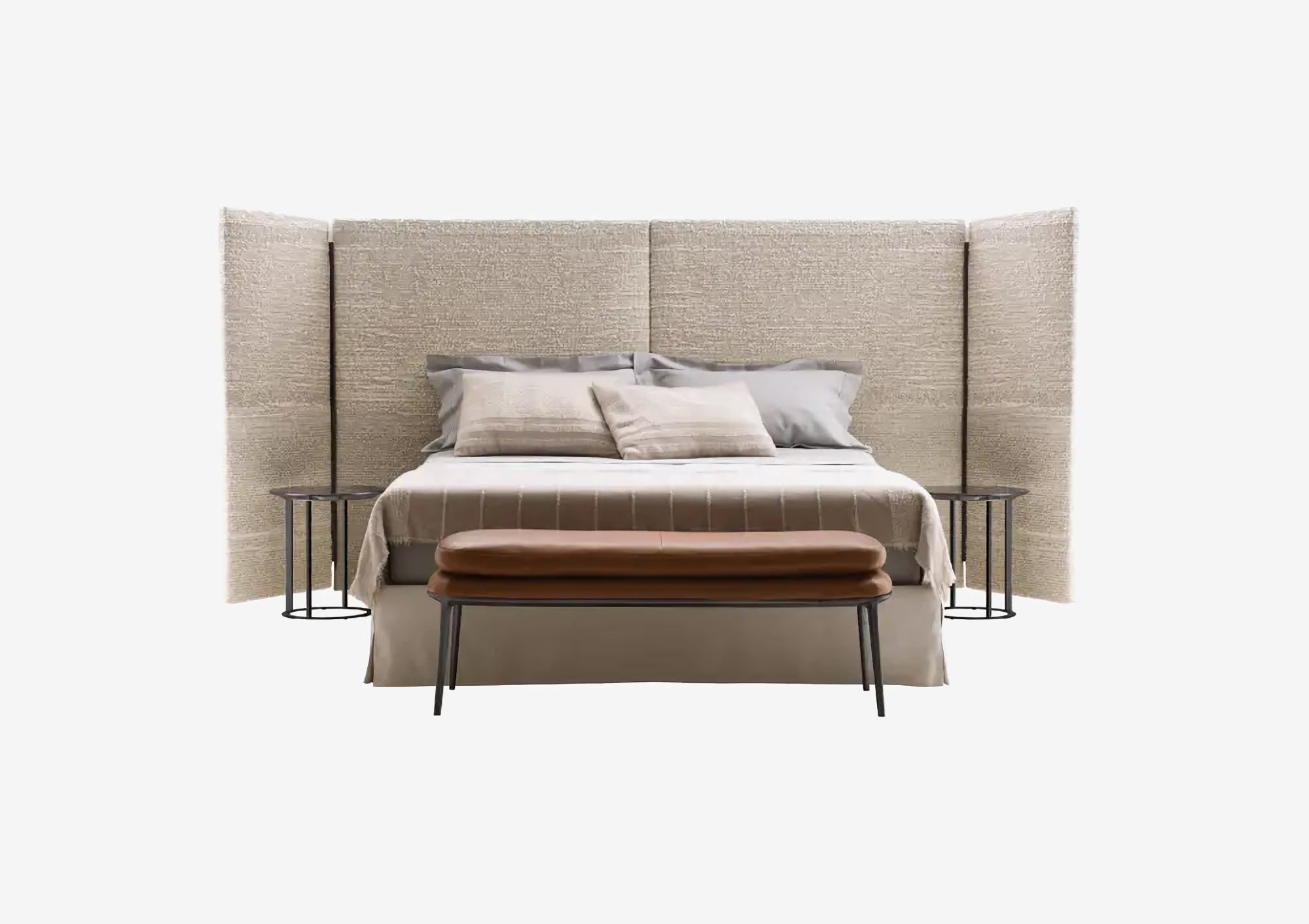 Кровать Maxalto Dike создаёт ощущение уюта и защищённости, приглашая к расслабленному отдыху. Ключевой декоративный элемент модели — массивное изголовье с закрывающими от внешнего мира боковыми частями. У кровати отсутствуют видимые ножки, основание Dike скрыто за обивкой из люксовых материалов.