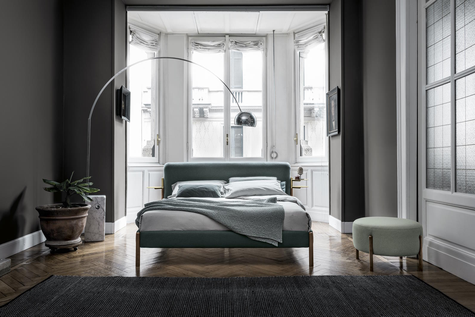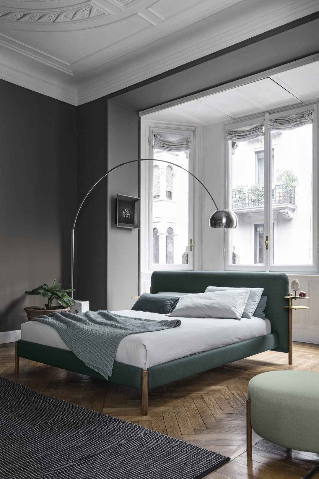 Кровать Bolzan Flag — это предмет интерьера с современным дизайном, объединяющий в себе простоту форм и изысканность деталей. Этот объект родился из необходимости гармоничного использования двух благородных материалов: ткани и дерева. Кровать дополнена латунными аксессуарами, которые органично сочетаются с различными типами обивки.