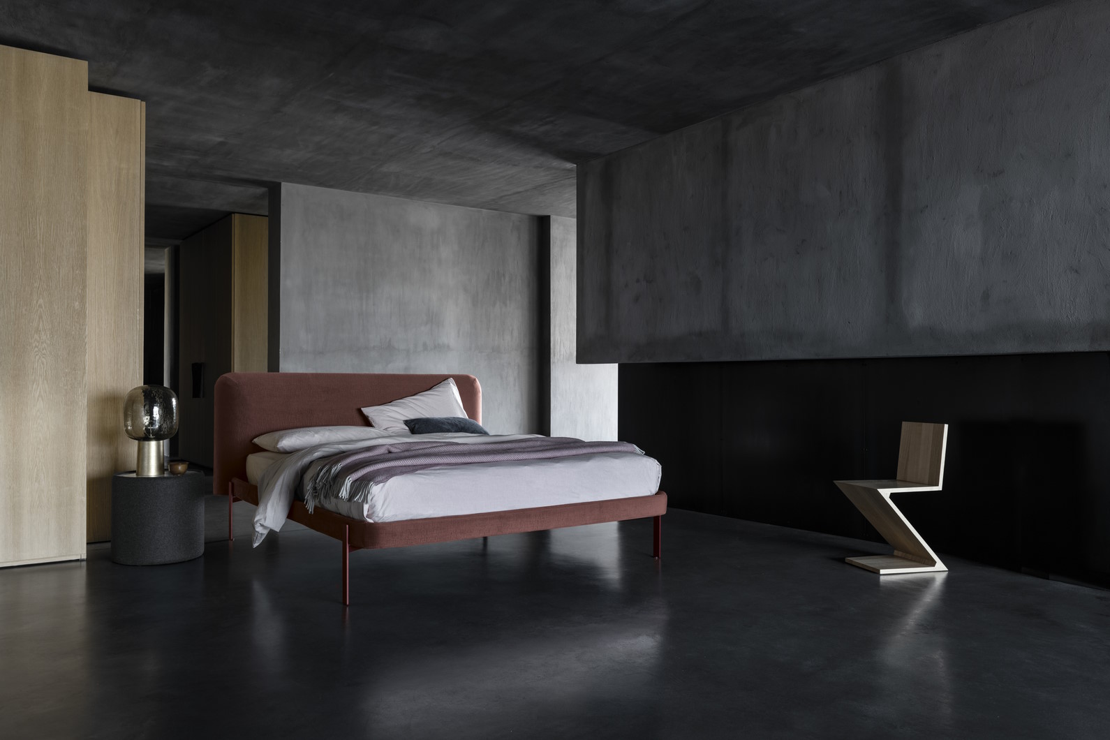 Кровать Bolzan Joy играет на контрасте между мягким и объёмным изголовьем и тонкими геометрическими ножками. В результате получается приятный и лёгкий силуэт с оттенком гламурной элегантности.