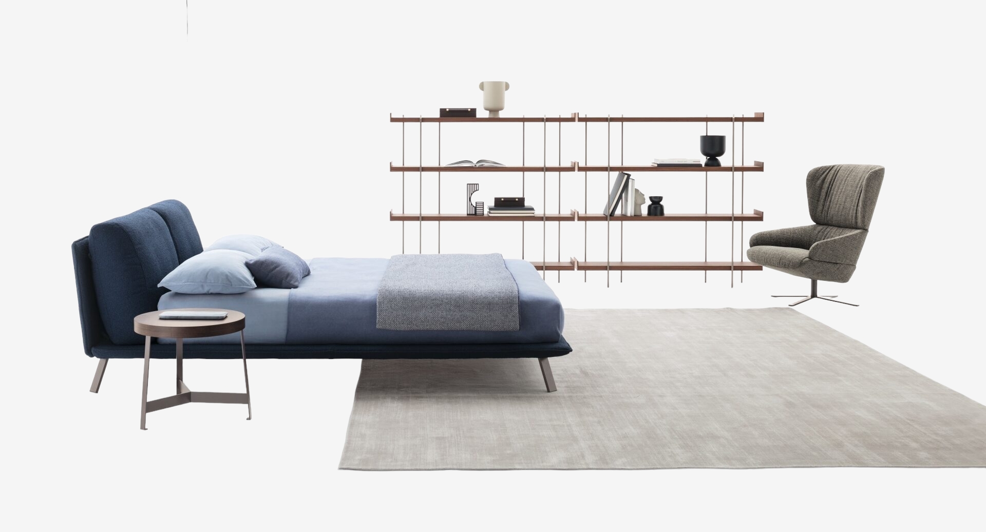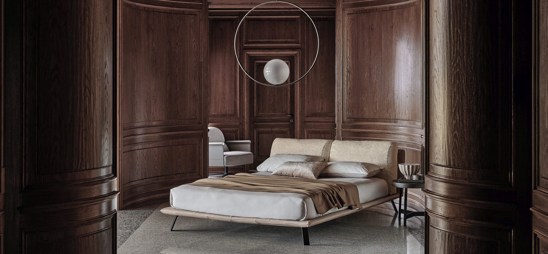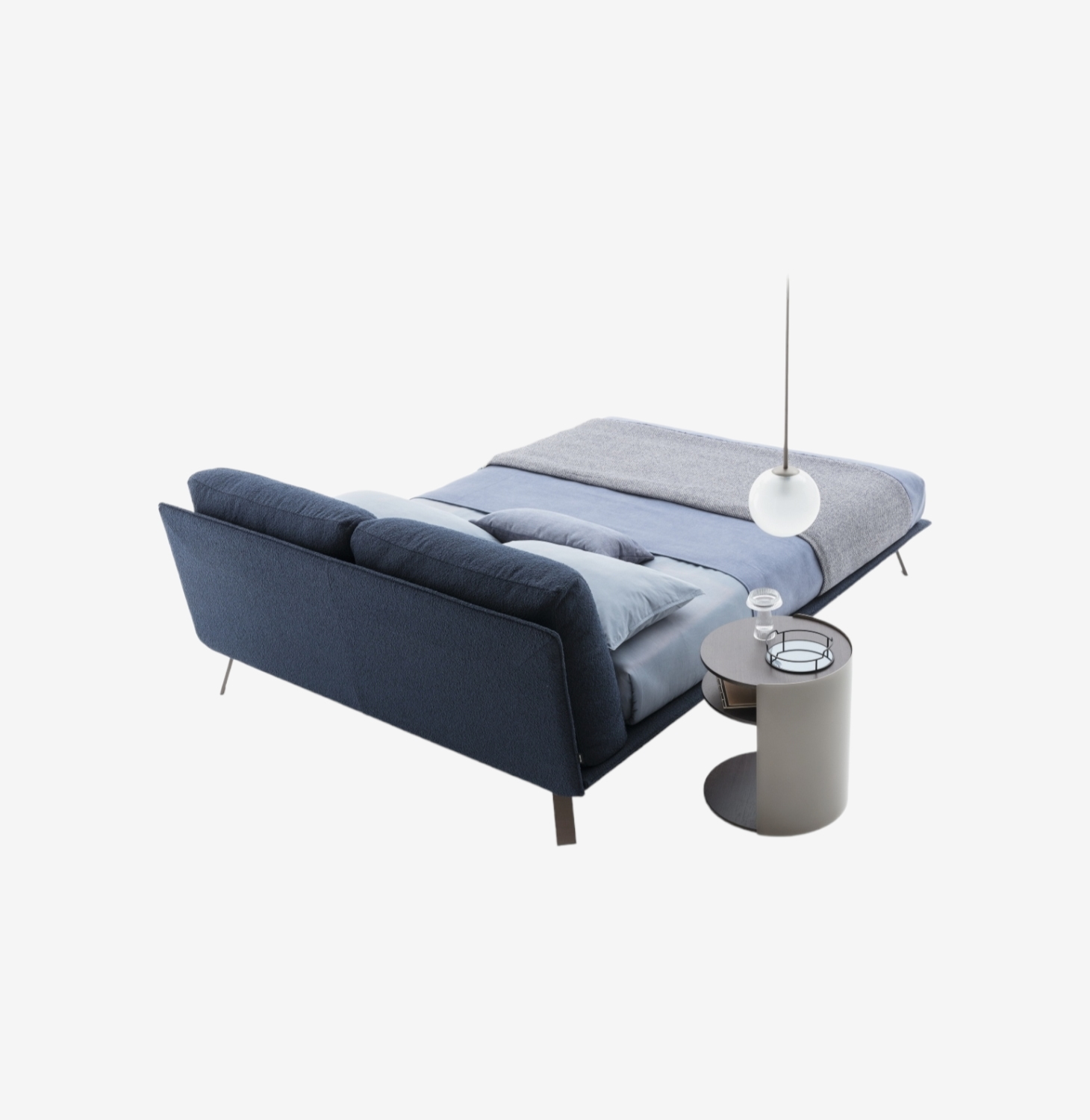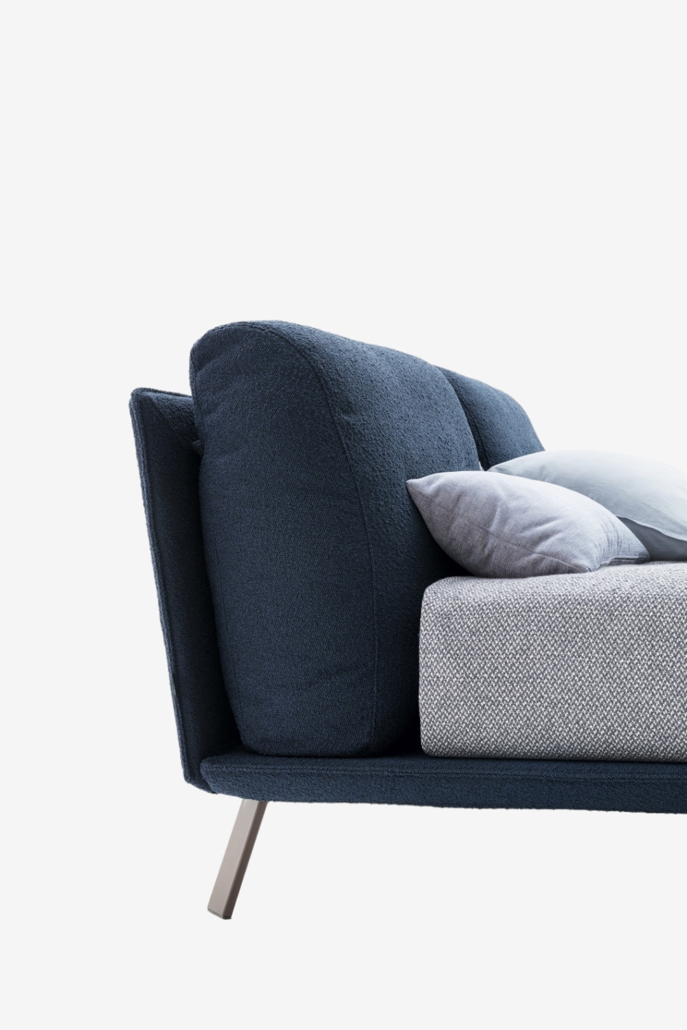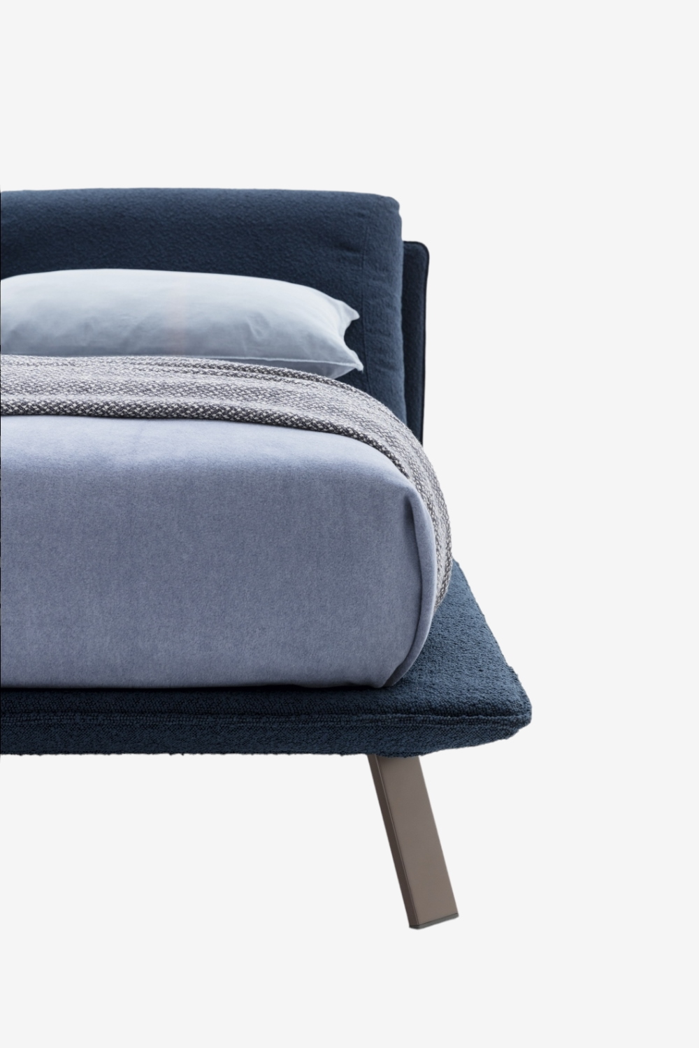 Металлические ножки кровати Ditre Italia Kanaha гармонируют с изящным каркасом кровати и её мягкой обивкой, создавая неповторимый и узнаваемый силуэт. Благодаря большому количеству вариантов обивки из ткани и кожи, она прекрасно впишется в любой интерьер. Автор дизайна — Daniele Lo Scalzo Moscheri.