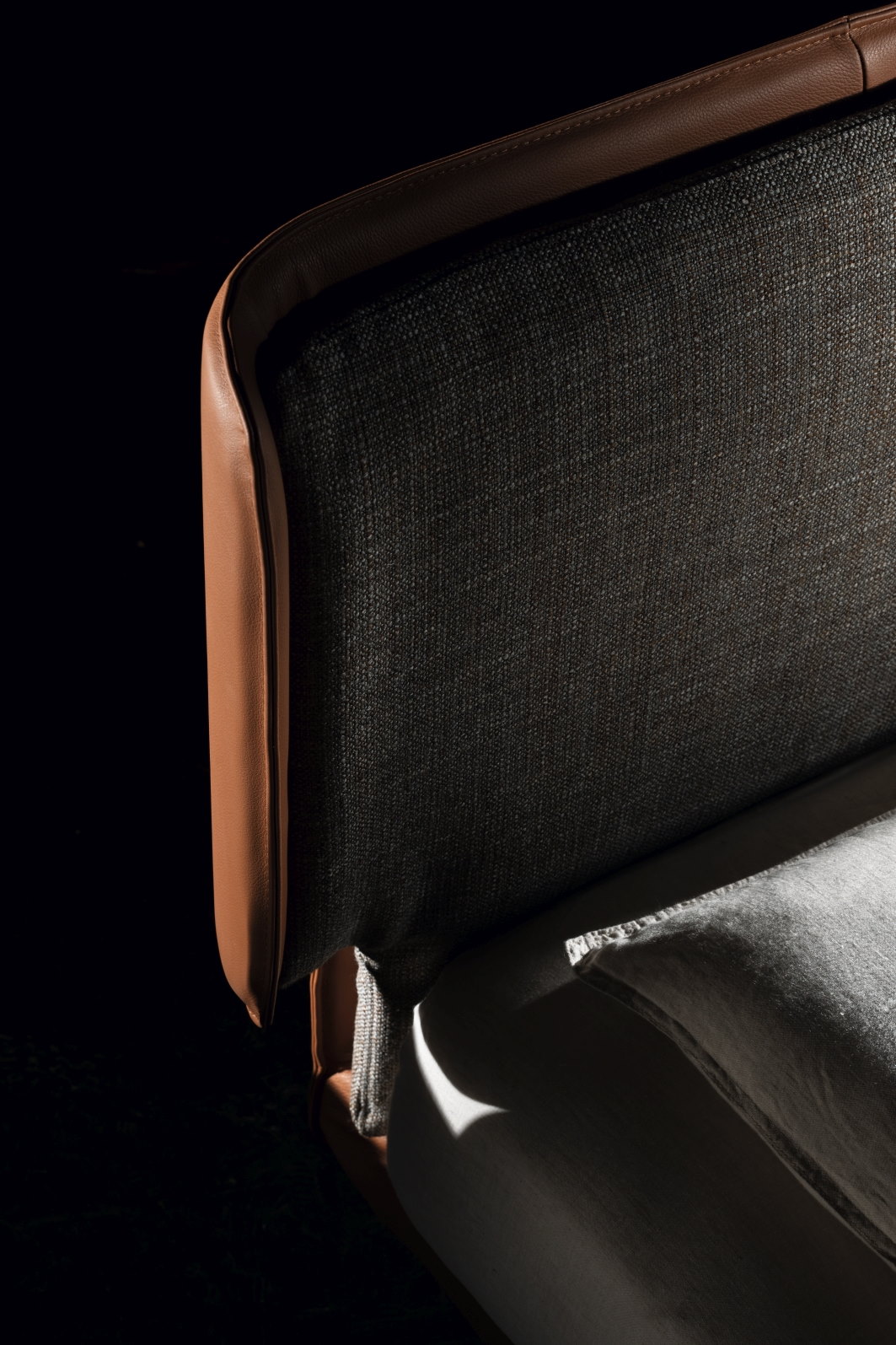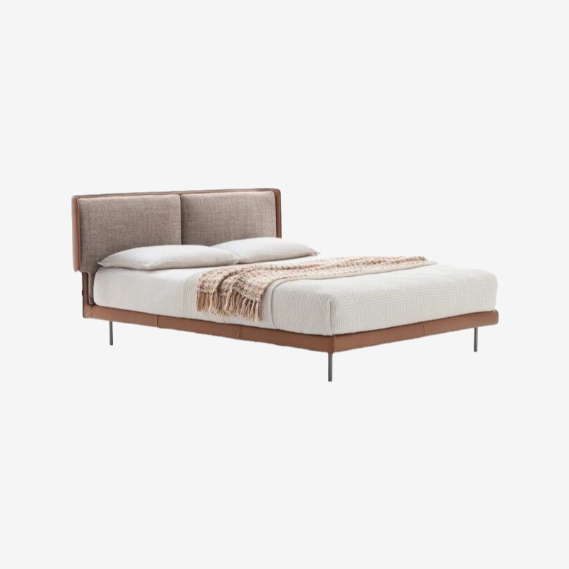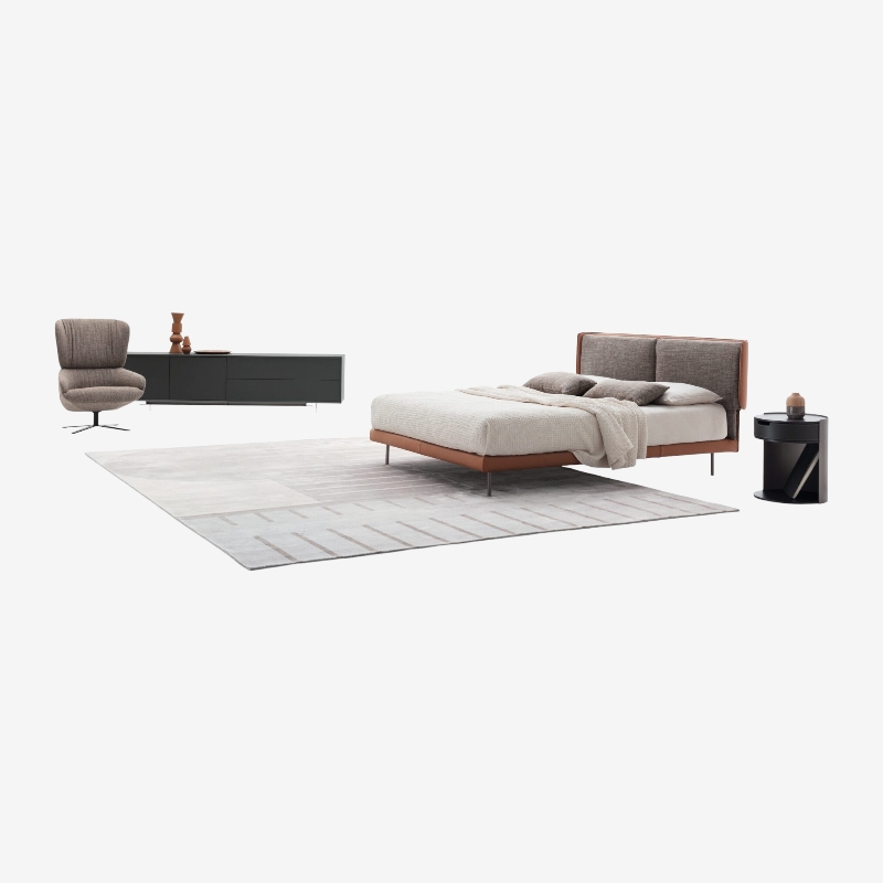 Главный акцент изделия — высокое изголовье с мягкой текстильной обивкой. Плавные, слегка изогнутые контуры изголовья обволакивают тело, создавая комфортную опору для спины. Элегантная спинка превращает Skin не просто в спальное место, а в уютный уголок для расслабленного чтения и отдыха.
