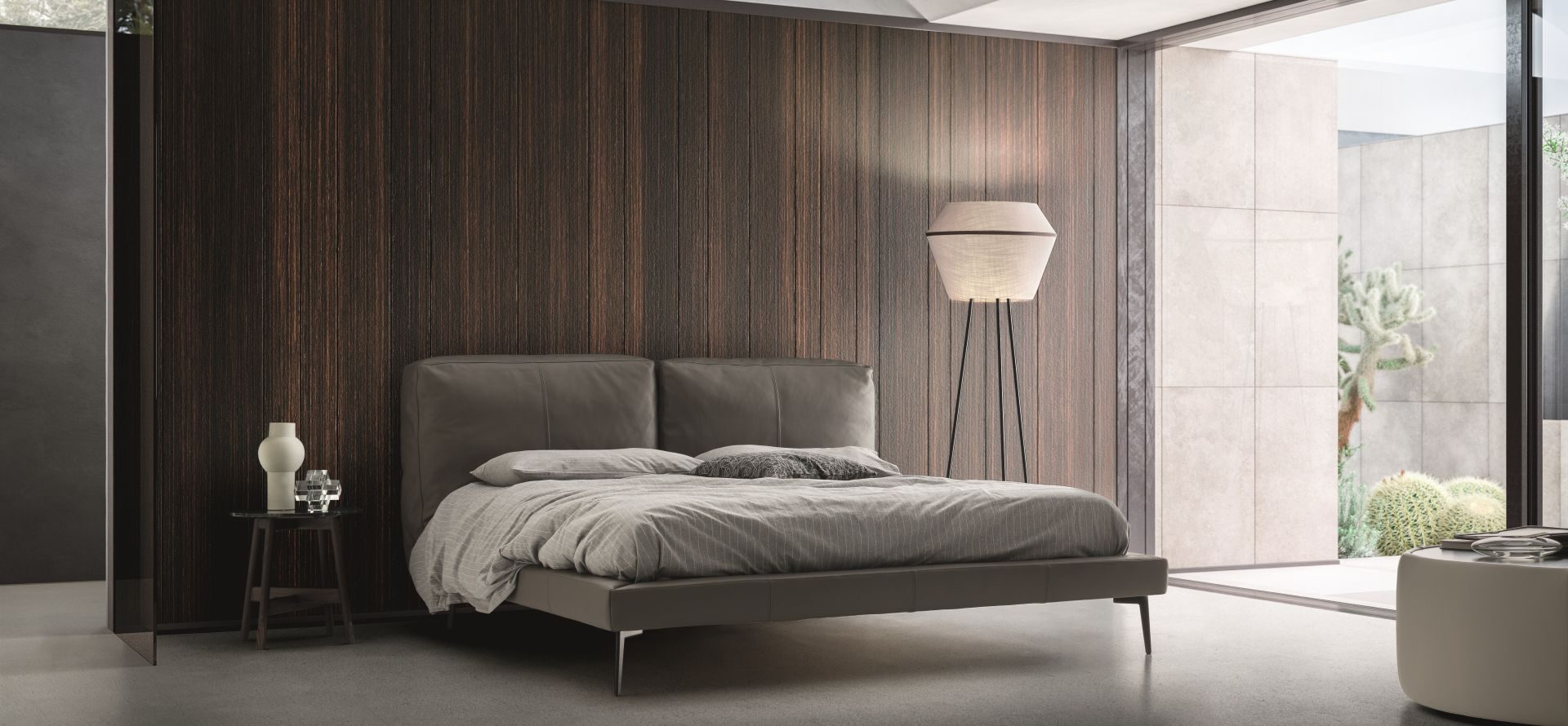 Кровать Ditre Italia Sound предлагает баланс между высокой модой и привычным комфортом. Таким образом, её полностью обитое изголовье гармонично сочетается с более обтекаемой конструкцией, поддерживаемой металлическими ножками.