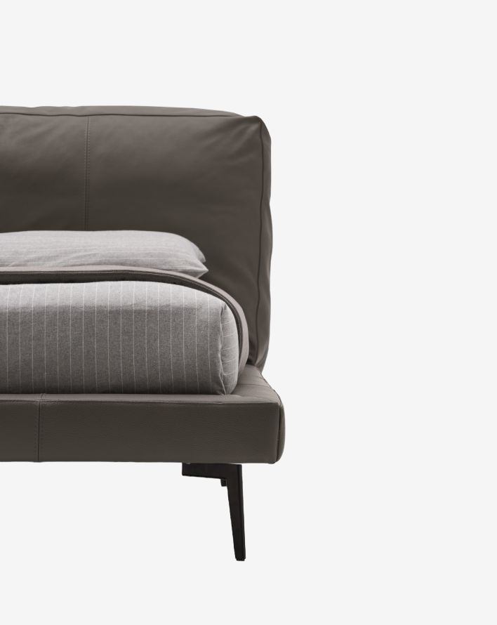 Изголовье и каркас кровати имеют съёмные чехлы из ткани и несъёмные — из кожи.