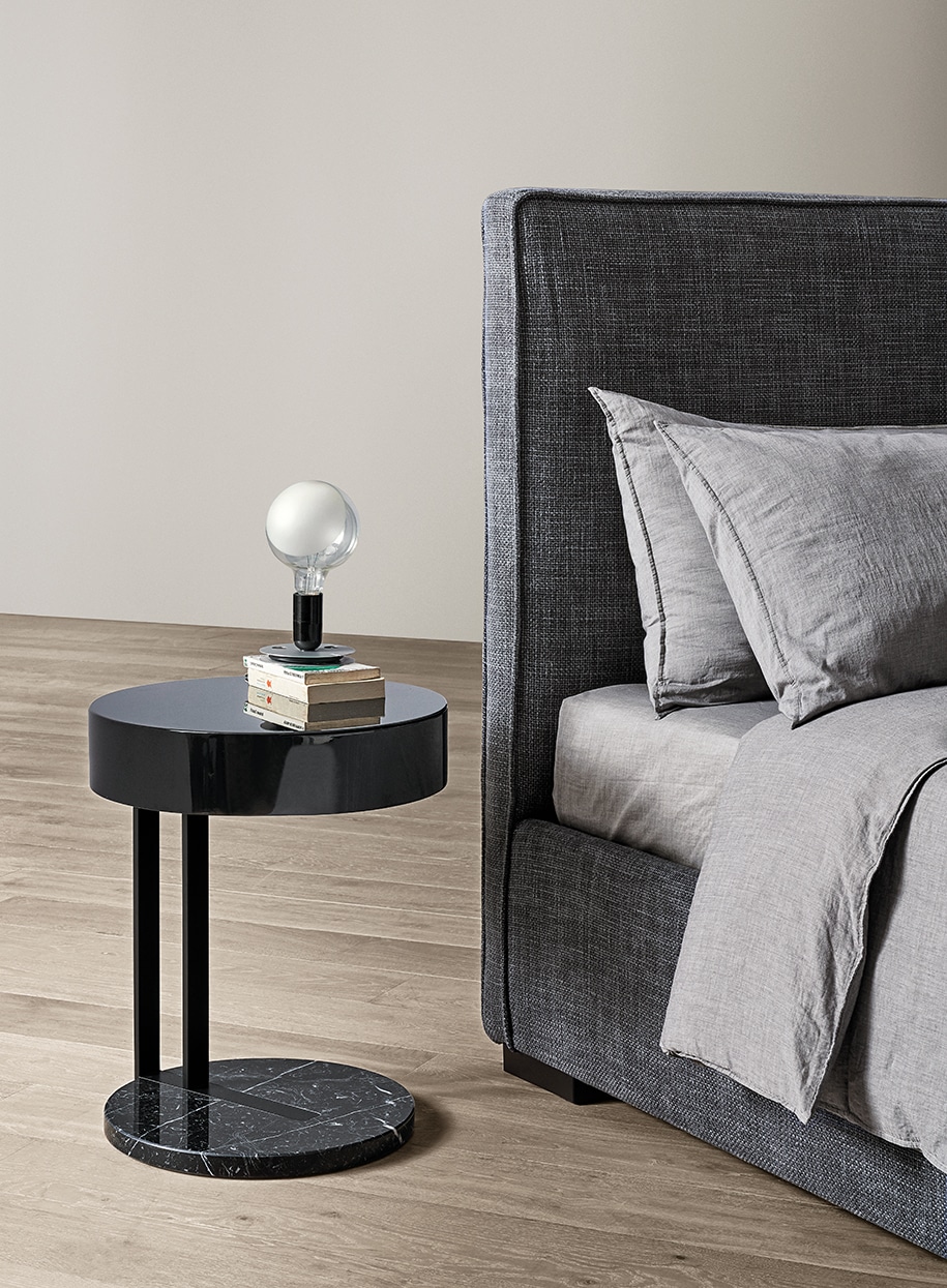Концепция дизайна приставного столика Meridiani Ralf основана на сбалансированном и гармоничном сочетании нескольких фактур. Комбинация мраморного основания и деревянной лакированной столешницы придаёт модели элегантный вид. Скрытый выдвижной ящик является приятным дополнением к использованию. C полным каталогом доступных отделок и цветов можно ознакомиться по ссылке.