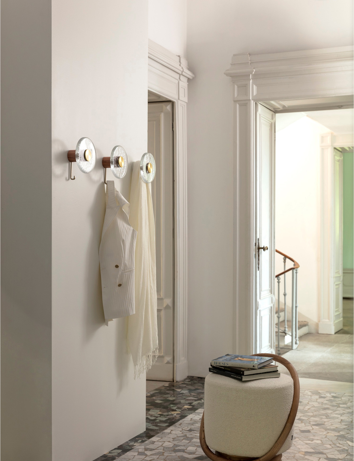 Настенные крючки Porada Jupiter изготовлены из дерева, металла и стекла.