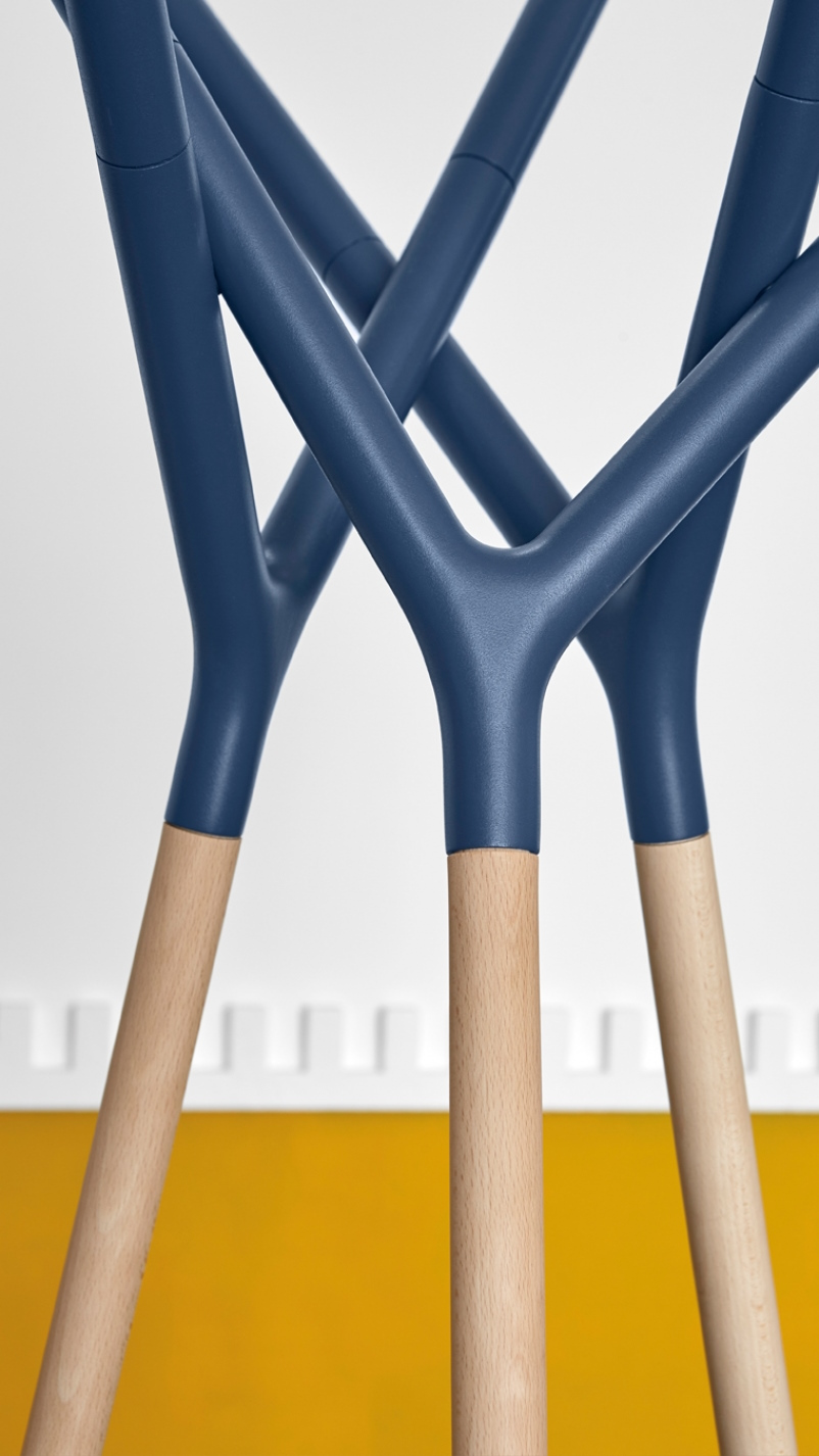 Три Y-образных элемента поддерживают друг друга, находя в единстве чрезвычайно устойчивый баланс. Это придаёт вешалке для одежды Miniforms Game of Trust уникальную концепцию.