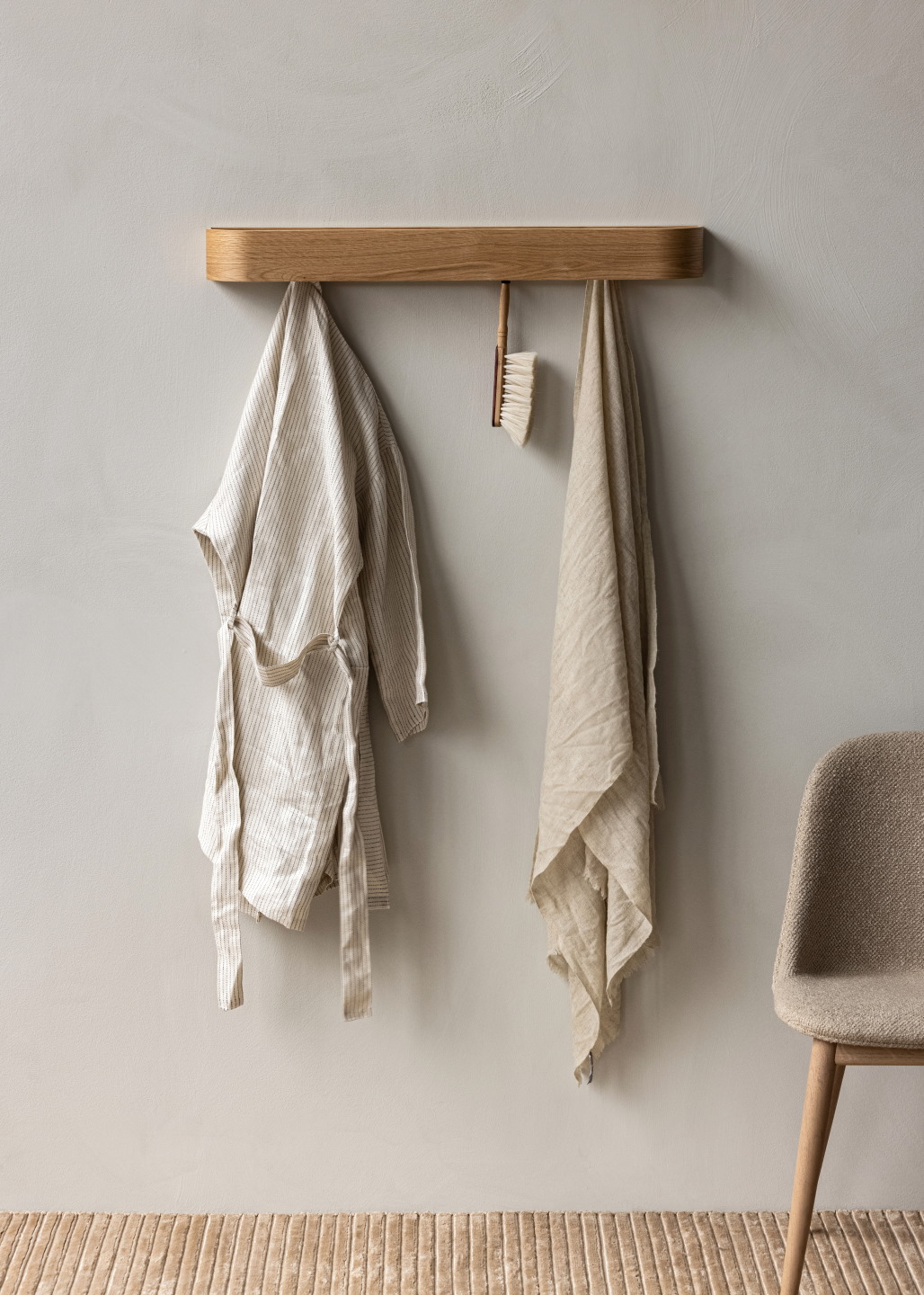 Вешалка изготовлена из дубового шпона в отделке Natural Oak и Dark Stained Oak.