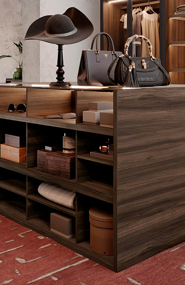 Остров Kico Hive Island имеет неподвластный времени дизайн, объединяющий величие прошлого и геометрию будущего. Модель сочетает в своей конструкции выдвижные ящики и открытые отсеки. Тёплые тона и классический силуэт острова позволяют создать уютную атмосферу в любом помещении.