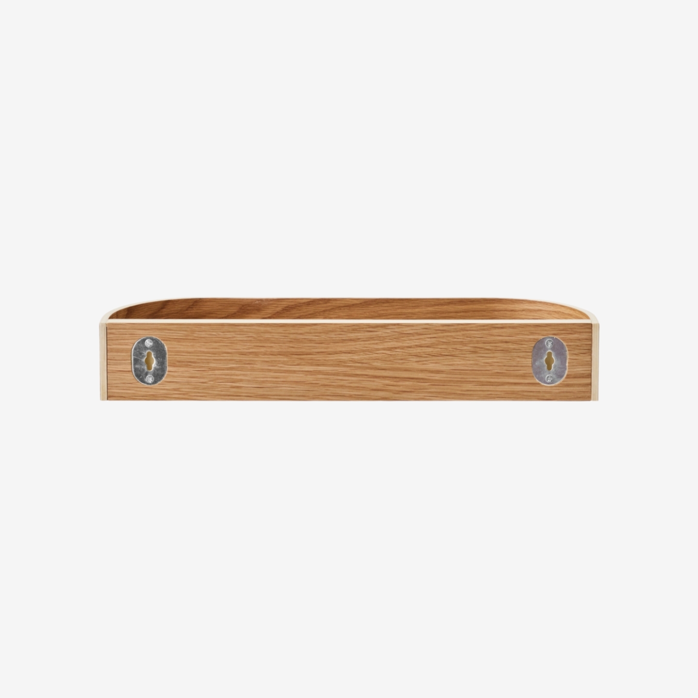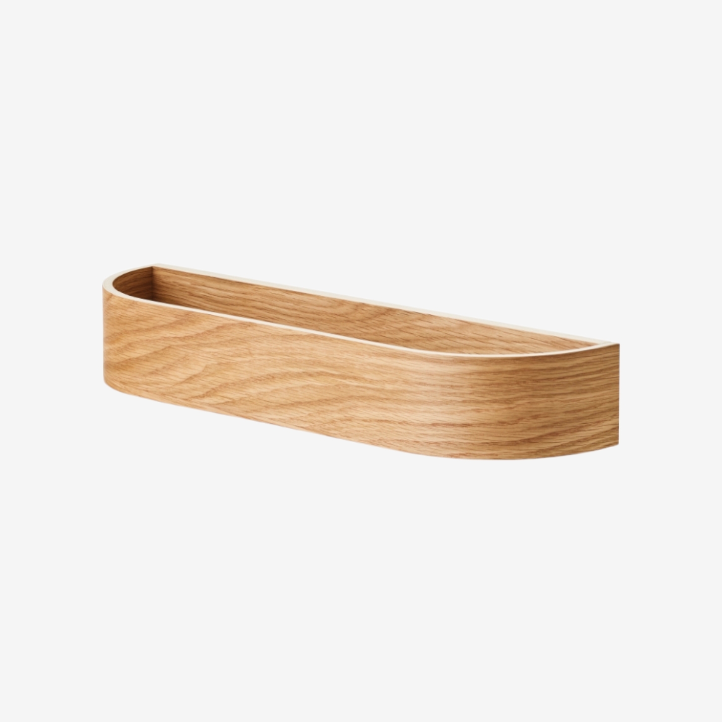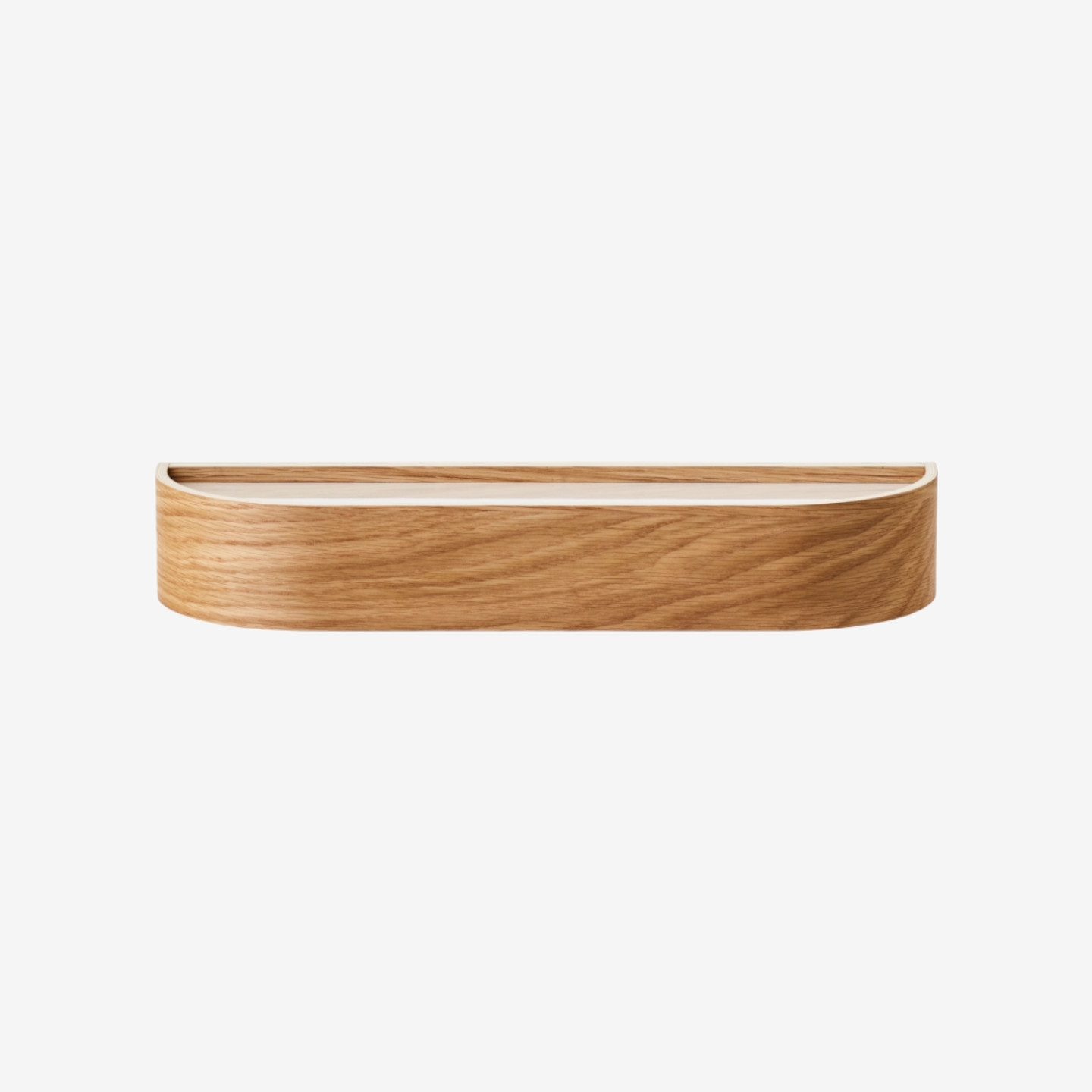 Полка изготовлена из дубового шпона в отделке Natural Oak и Dark Stained Oak.