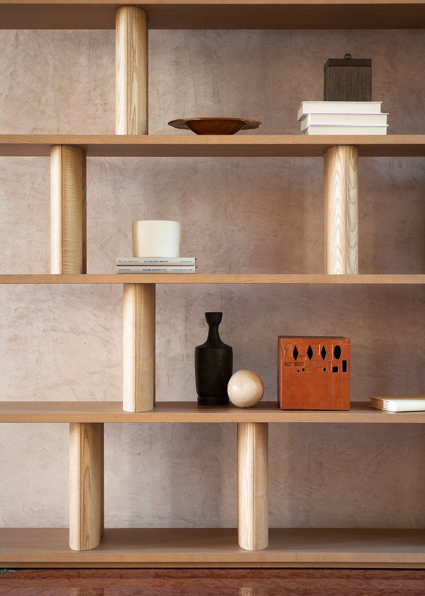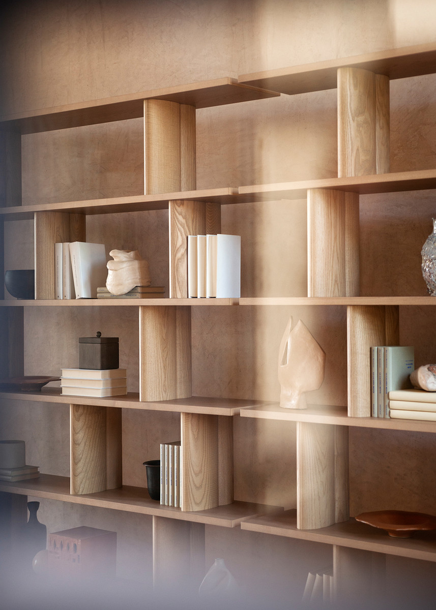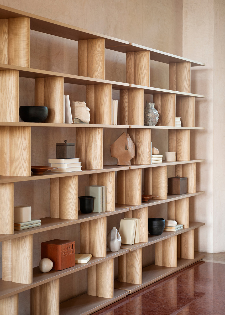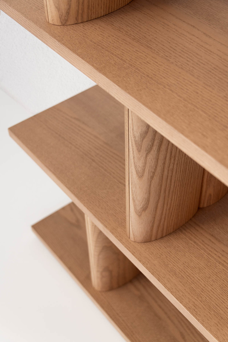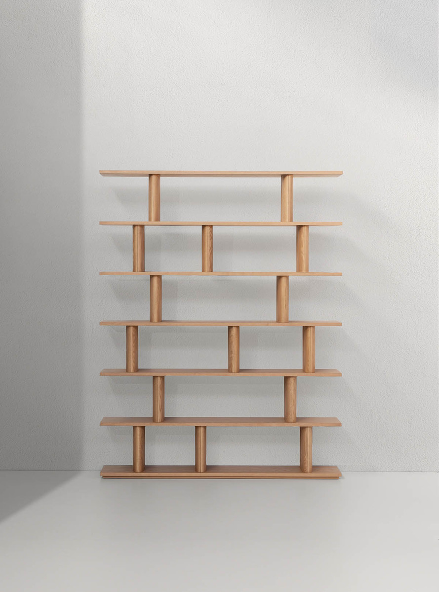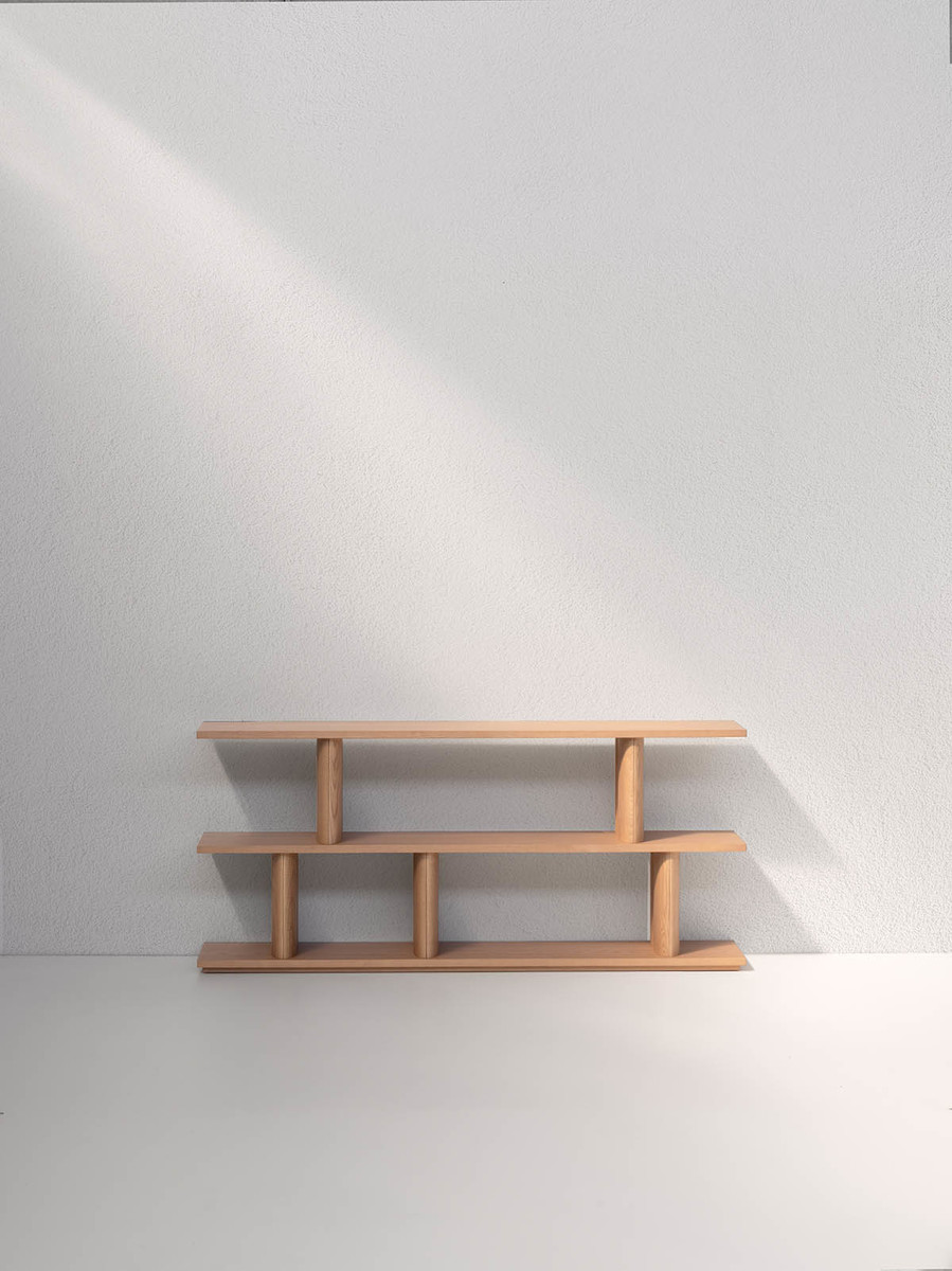 Стеллаж Potocco Pages от Studio Omi Tahara — стеллаж с прямоугольным силуэтом и ритмичной структурой. Горизонтальные полки закреплены на массивных деревянных стойках. Все элементы имеют прямые линии и четкие углы. Стеллаж доступен в версиях с двумя, четырьмя или шестью полками.