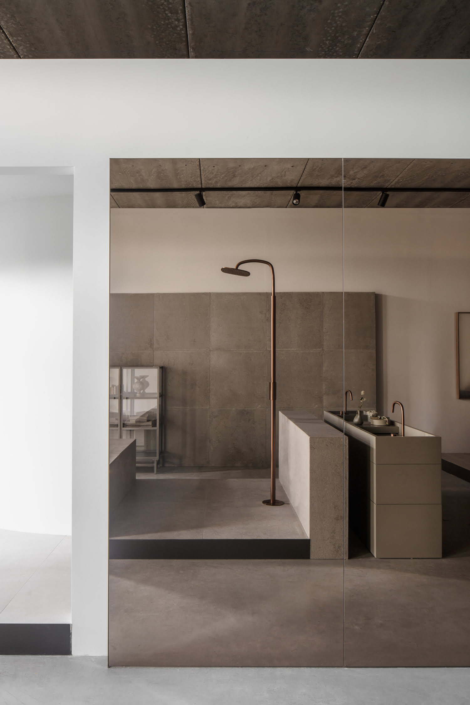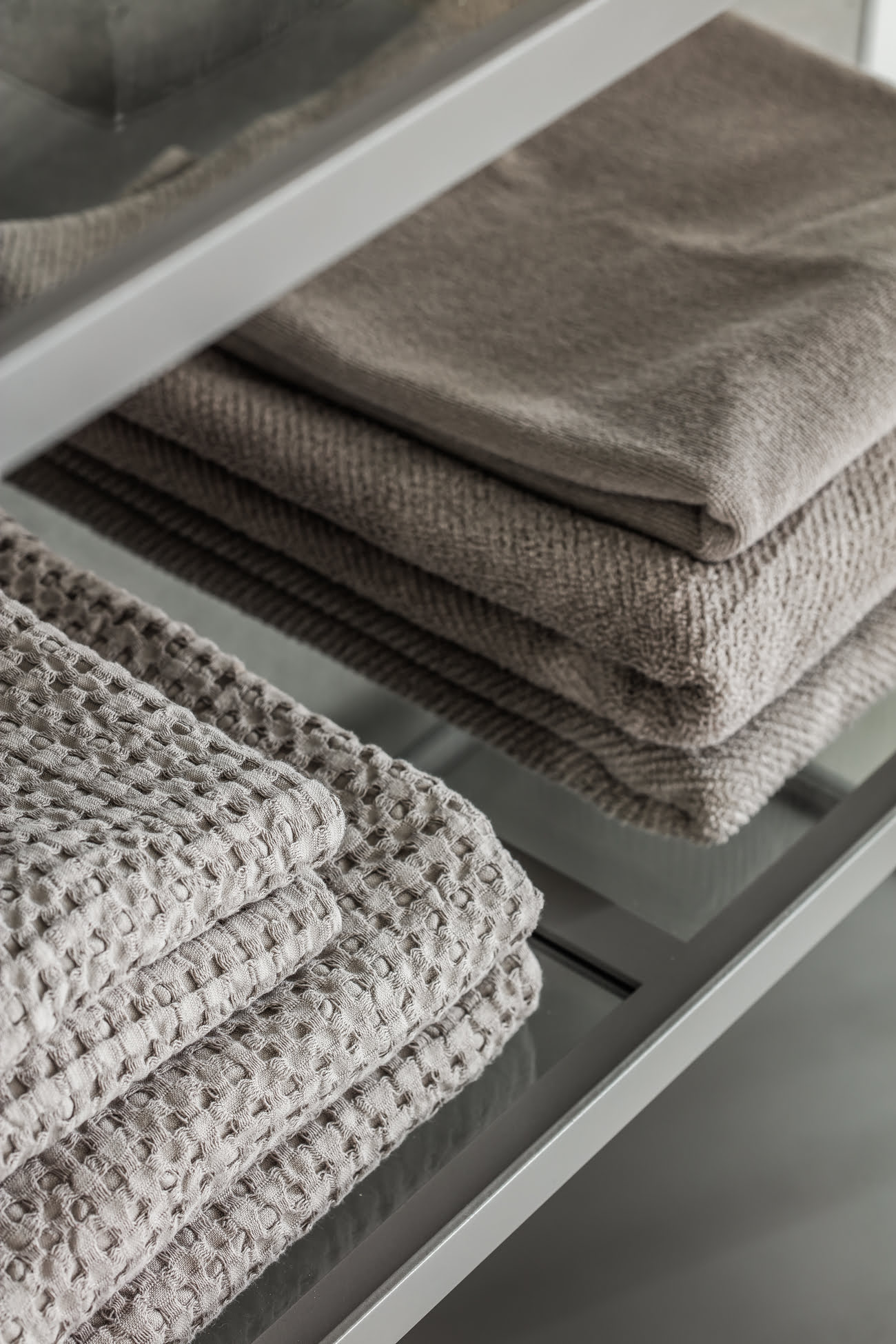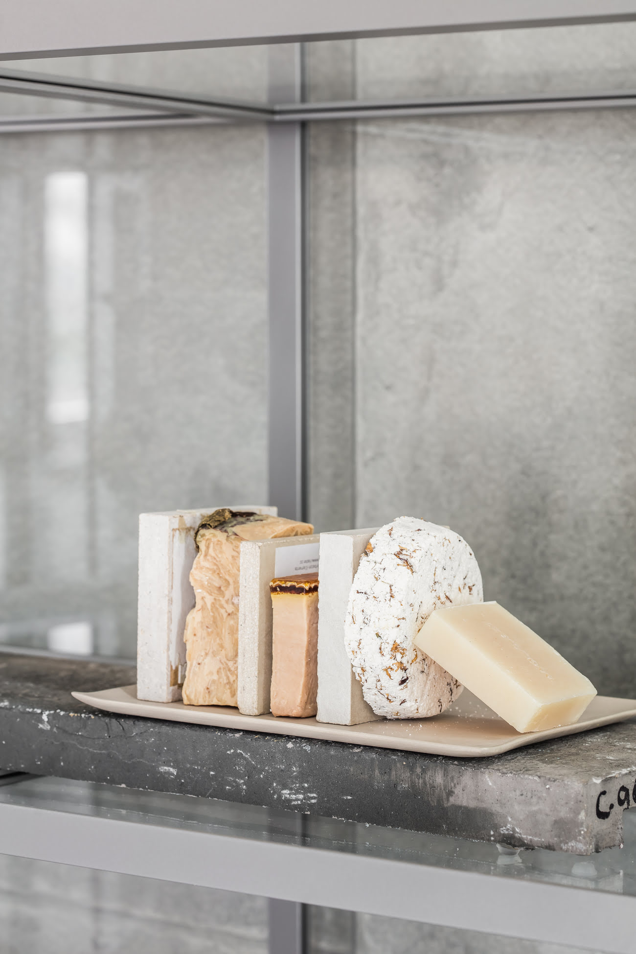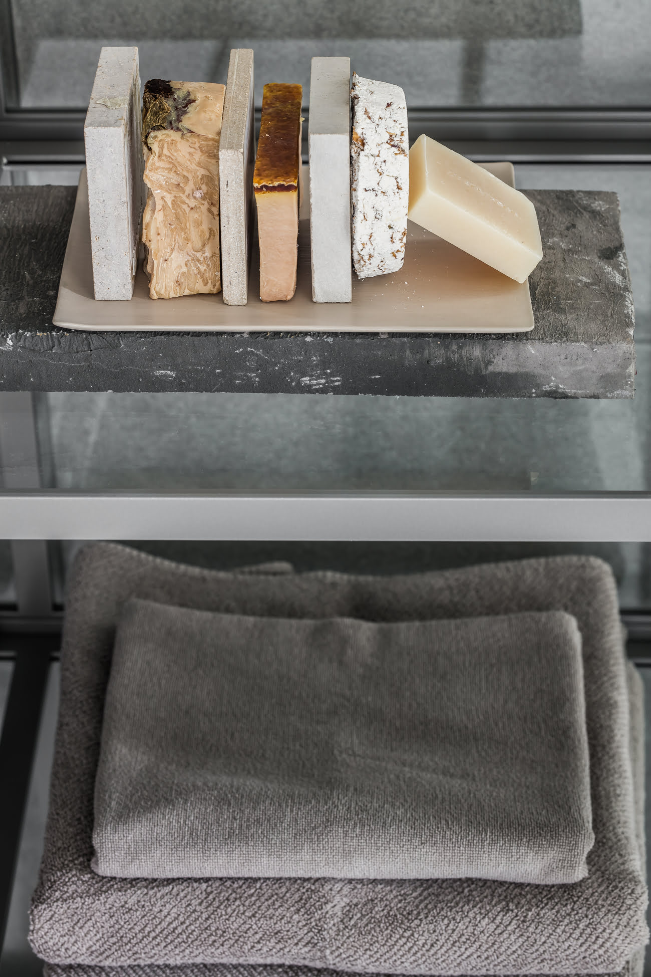 Витрина Finn Cabinet имеет каркас из стали с порошковым покрытием и безопасные стёкла. Двери закрываются с помощью магнита.