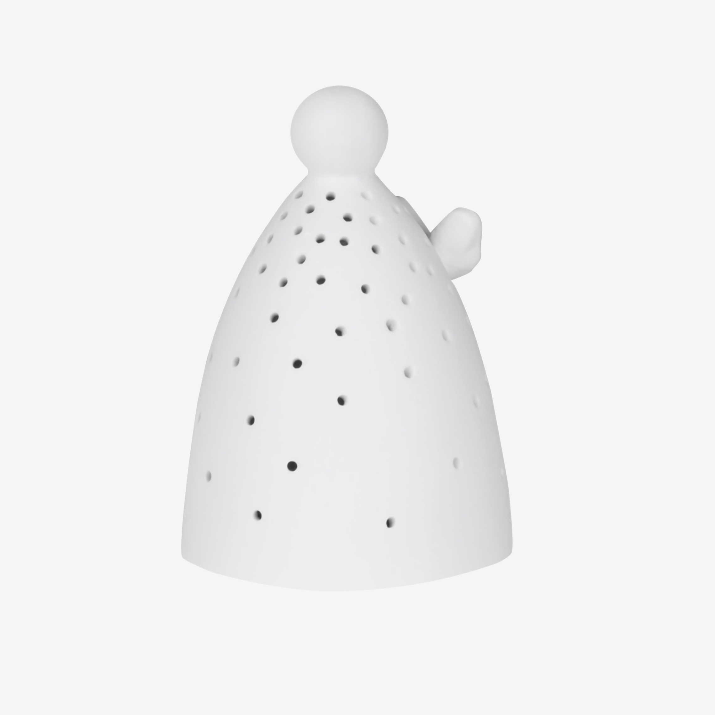 Декоративная статуэтка-светильник Räder Heavenly light — Dots, small выполнена в виде нежного рождественского ангела. Белоснежная поверхность статуэтки дополнена прорезями, пропускающими тёплый свет LED-модуля. Декоративная фигурка станет частью зимней композиции на полке, прикроватной тумбочке или подоконнике.