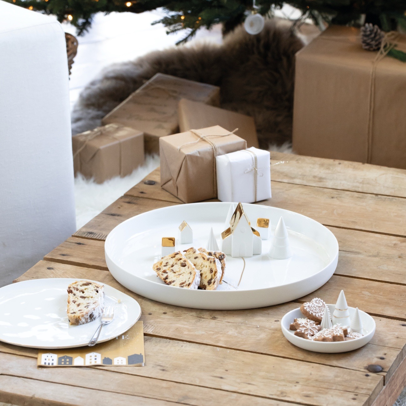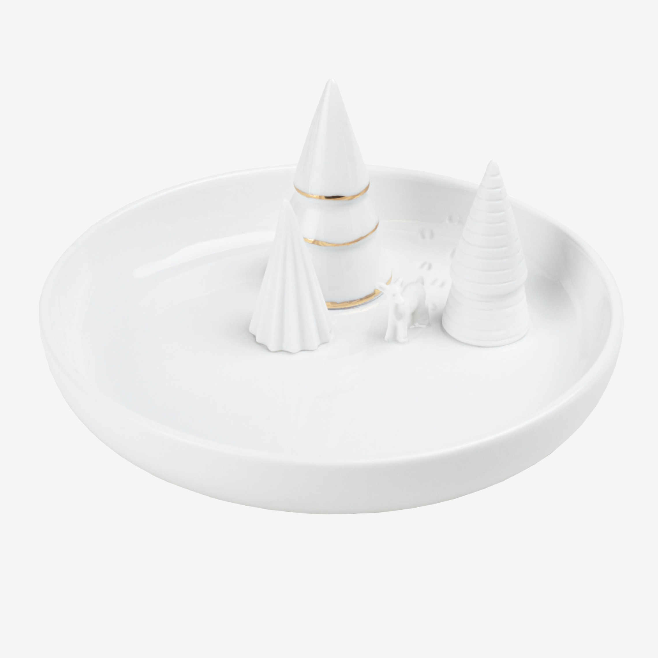 Декоративное блюдо Räder Forest bowl — зимняя композиция, которая станет центром праздничной сервировки стола. Прочное фарфоровое блюдо выполняет роль постамента для фигурных лесных деревьев и миниатюрного оленя. Используйте чашу для подачи рождественских печений, конфет и закусок.