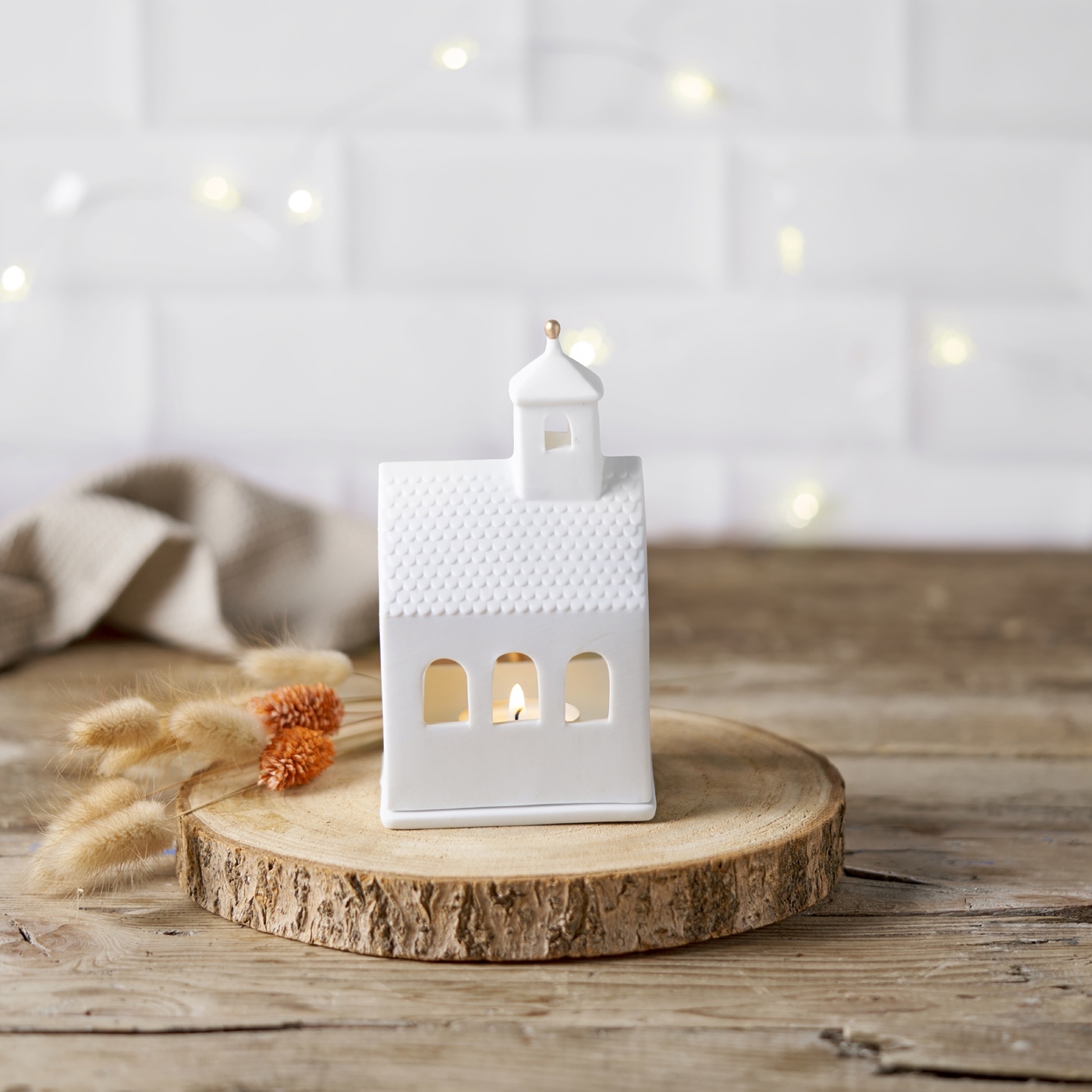 Домик-подсвечник Räder Chapel, small повторяет форму часовни. Белый неглазурованный фарфор, элегантные резные окна и искусно выполненная башенка делают подсвечник элегантным, функциональным и прочным. Мягко рассеивая свет пламени свечи, часовня Chapel, small создаёт тихую рождественскую атмосферу.