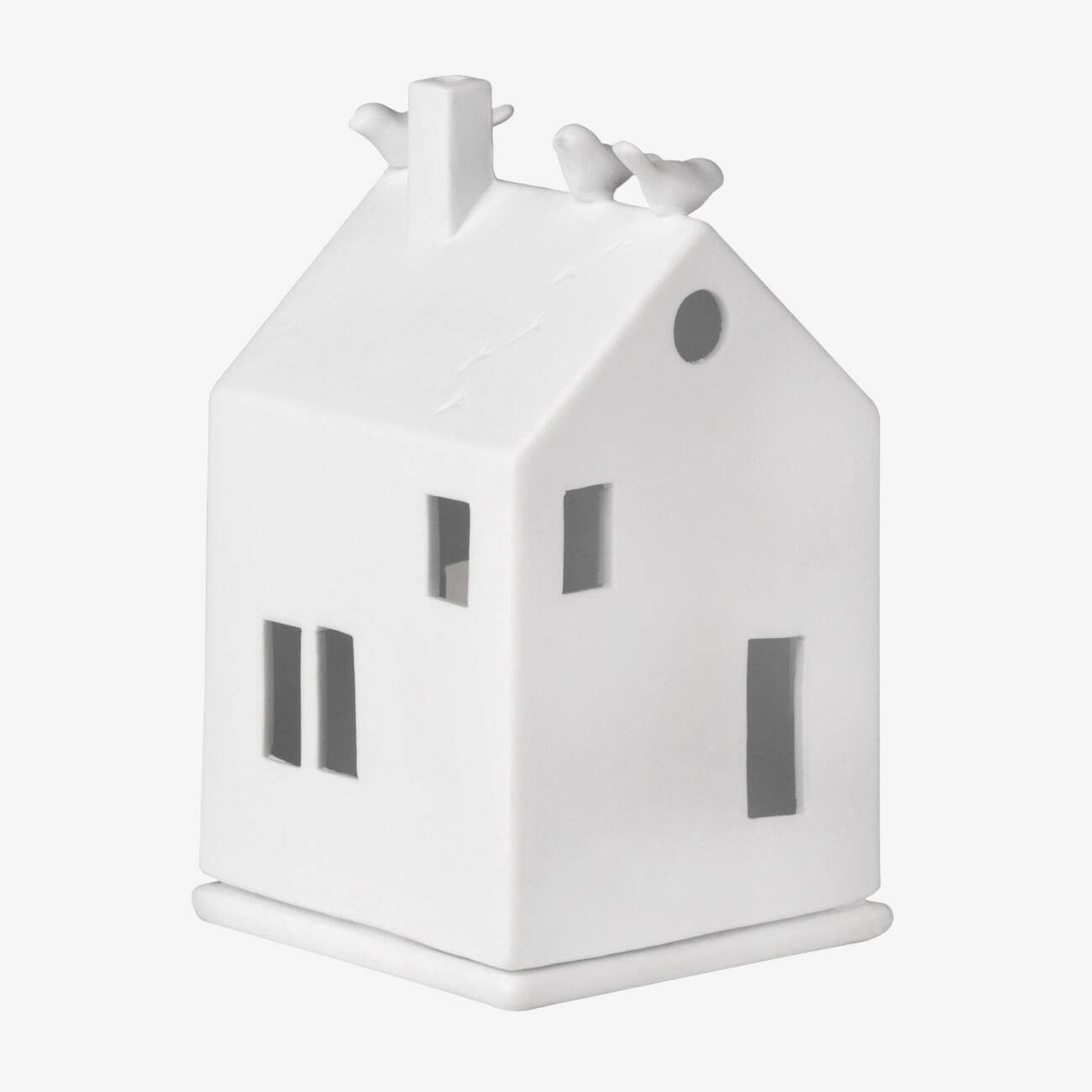 Домик-подсвечник Räder создаст уютную атмосферу зимними вечерами. Изделие выполняется вручную из неглазурованного фарфора. В качестве источника света можно использовать небольшую светодиодную свечу.