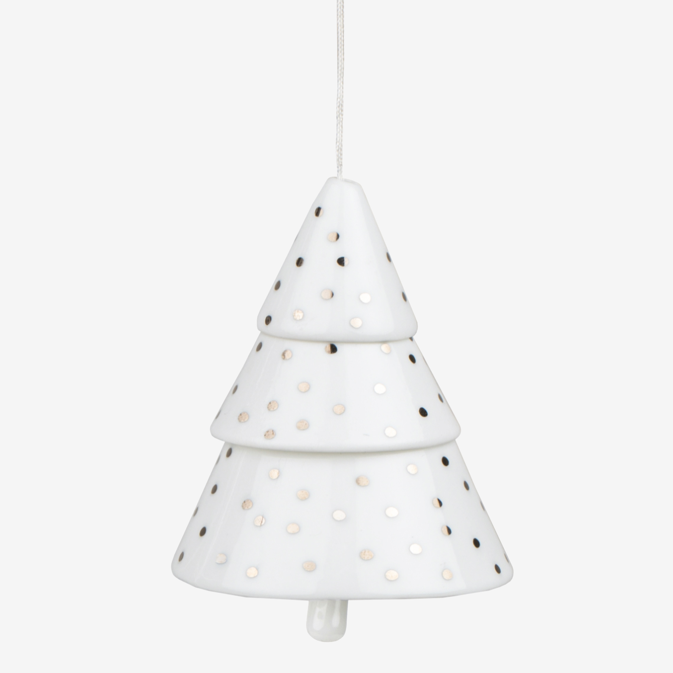 Ёлочная игрушка Räder Porcelain hanger — Silver Star выполнена в сдержанном дизайне, идеально смотрящемся в сканди интерьерах. Универсальный белоснежный подвес выглядит более празднично и нарядно благодаря нежному, но выразительному орнаменту из серебряных точек. При покачивании игрушка мелодично звенит, наполняя дом духом Рождества.