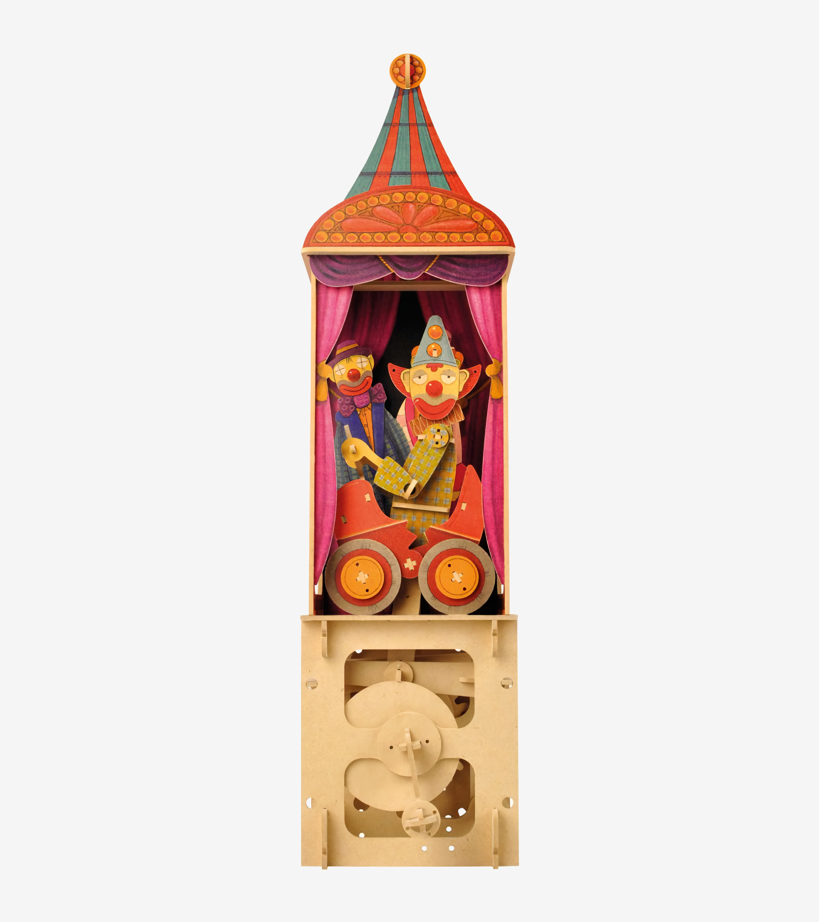 Игрушка-пазл Musicboxworld Puzzle 3D — объёмная конструкция, внутри которой находится один из цирковых персонажей. Повернув рычаг в нижней части игрушки, можно привести в движение клоунов, слона или жонглёра. Изделие доставляется в подарочной упаковке.